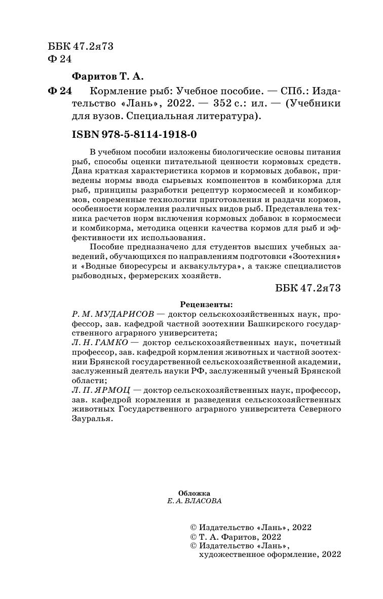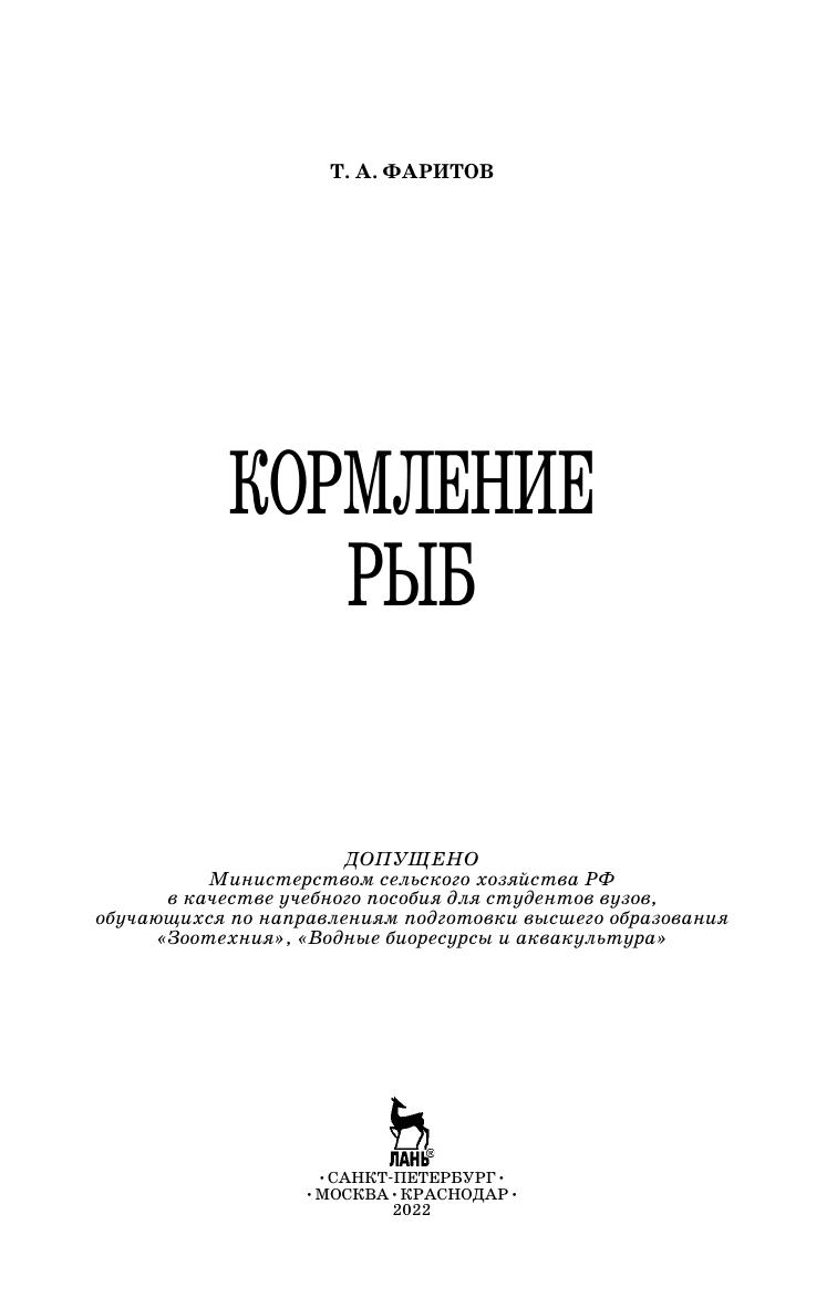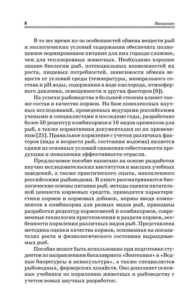 В учебном пособии изложены биологические основы питания рыб, способы оценки питательной ценности кормовых средств. Дана краткая характеристика кормов и кормовых добавок, приведены нормы ввода сырьевых компонентов в комбикорма для рыб, принципы разработки рецептур кормосмесей и комбикормов, современные технологии приготовления и раздачи кормов, особенности кормления различных видов рыб. Представлена техника расчетов норм включения кормовых добавок в кормосмеси и комбикорма, методика оценки качества кормов для рыб и эффективности их использования. Пособие предназначено для студентов высших учебных заведений, обучающихся по направлениям подготовки «Зоотехния» и «Водные биоресурсы и аквакультура», а также специалистов рыбоводных, фермерских хозяйств.