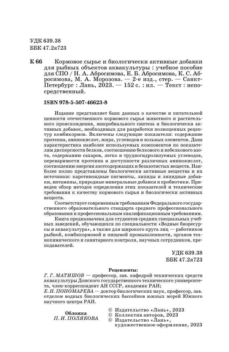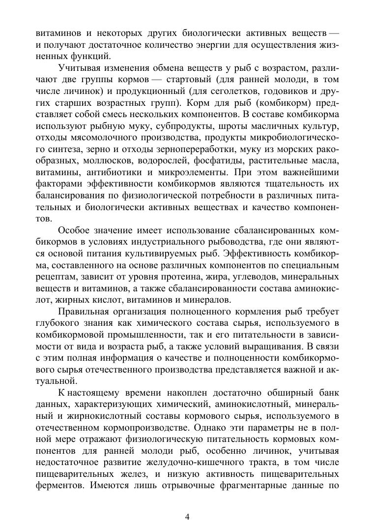 Издание представляет банк данных о качестве и питательной ценности отечественного кормового сырья животного и растительного происхождения, микробиального синтеза и биологически активных добавок, необходимых для разработки полноценных рецептур комбикормов. Включены следующие показатели: содержание протеина, аминокислот, жира, углеводов и зольных элементов. Дана характеристика наиболее используемых компонентов по показателям дисперсности белков, соотношению белкового и небелкового азота, содержанию сахаров, легко и трудногидролизуемых углеводов, переваримости протеина и доступности различных аминокислот, соотношению энергии азотсодержащих и безазотистых веществ. Наиболее полно представлены биологически активные вещества и их источники: каротиноидные пигменты, липиды и липидные добавки, витамины, природные минеральные добавки и пробиотики. Приведен обзор методов определения этих показателей и технические требования к качеству кормового сырья и биологически активных веществ. Соответствует современным требованиям Федерального государственного образовательного стандарта среднего профессионального образования и профессиональным квалификационным требованиям. Книга предназначена для студентов средних специальных учебных заведений, обучающихся по специальности «Водные биоресурсы и аквакультура», а также для широкого круга лиц — работников рыбной, комбикормовой и пищевой промышленности, органов технохимического и санитарного контроля, научных сотрудников, преподавателей.