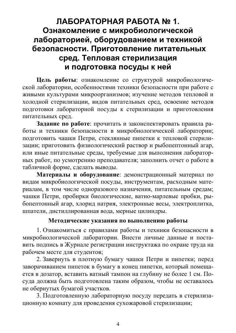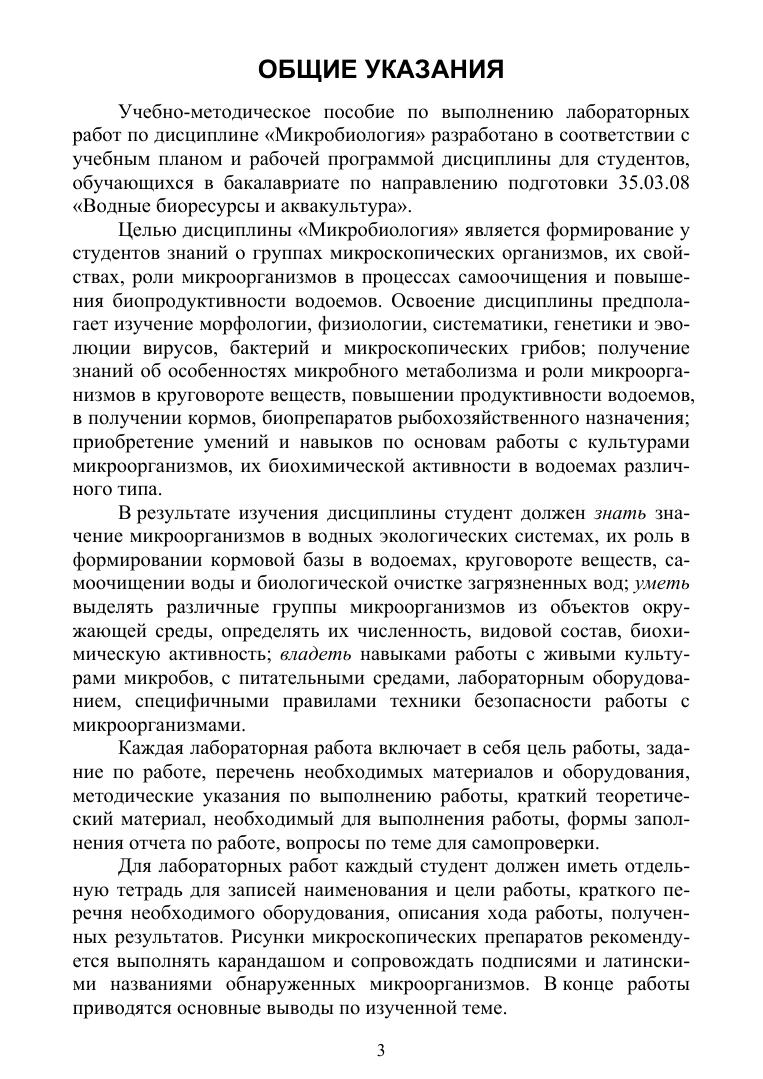 Учебное пособие предназначено для выполнения студентами лабораторных работ, предусмотренных рабочей программой дисциплины «Микробиология» по направлению подготовки «Водные биоресурсы и аквакультура». Каждая лабораторная работа включает в себя цель и задание по работе, перечень необходимых материалов и оборудования, методические указания по выполнению работы, краткий теоретический материал, формы заполнения отчета по работе, вопросы по теме для самопроверки. В практикум включен словарь терминов, поясняющий определения, используемые при изучении тем лабораторных работ.