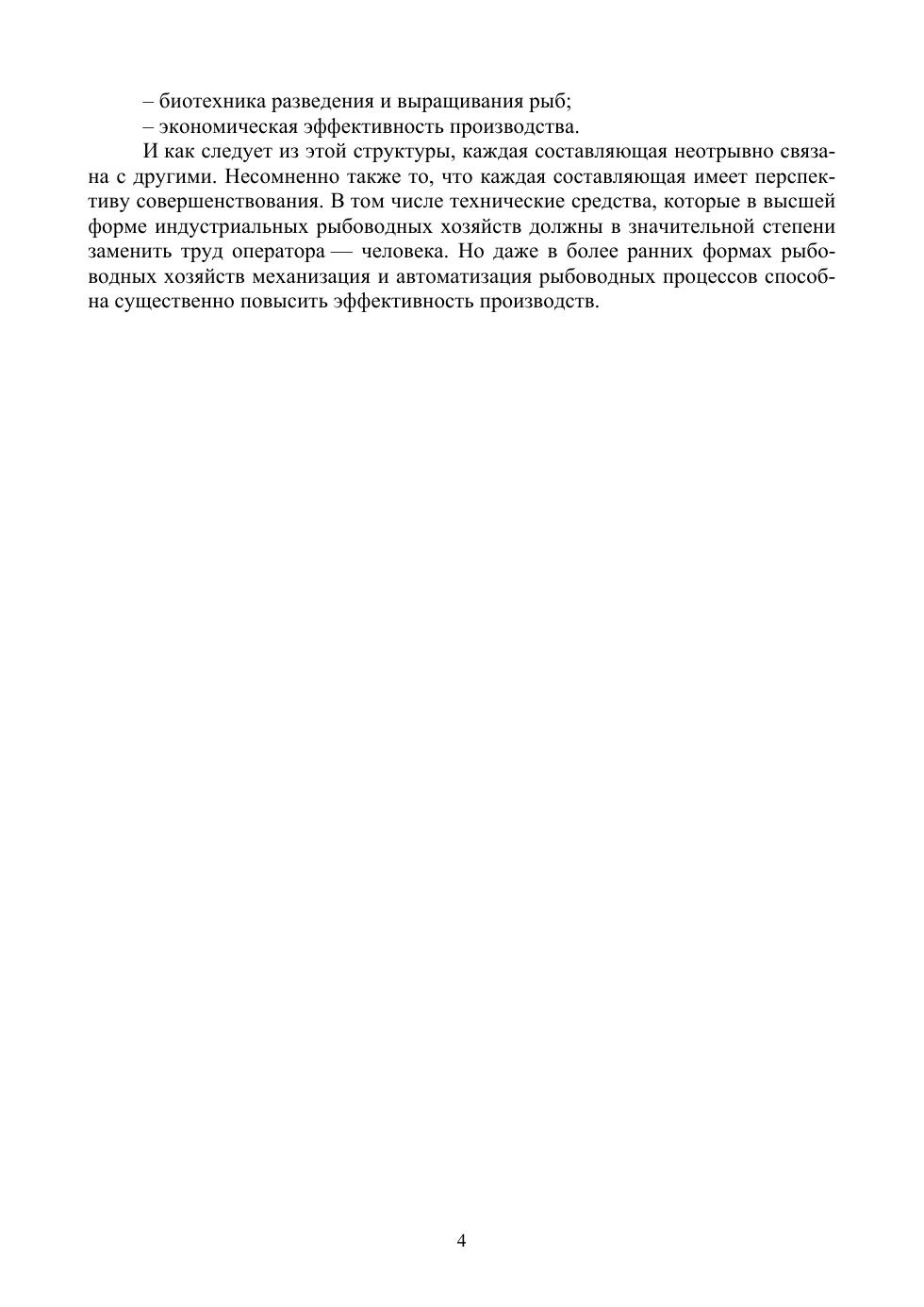 В учебнике рассматриваются системы водоподготовки и водоснабжения осетровых хозяйств, классифицированных на рыбопитомнике, товарные хозяйства, установки замкнутого водоснабжения (УЗВ). Системы водоподготовки и водообеспечения рассматриваются с позиции использования технических средств, обеспечивающих необходимое качество воды, подаваемой в рыбоводные системы и выходящей из них, технические средства, используемые для содержания производителей, инкубации икры, выдерживания предличинок, выращивания личинок и молоди, а также при товарном выращивании осетровых, а также сортировальные устройства, кормораздатчики и др. Дана техническая характеристика узлов УЗВ, обеспечивающих условия для разведения и выращивания рыбы, механической и биологической фильтрации воды, обеззараживание и оксигенация воды. Представлена характеристика к техническому обеспечению процесса транспортировки оплодотворённой икры, молоди, товарной рыбы. В конце каждой главы предлагаются вопросы для самопроверки. В конце учебника дается глоссарий и список рекомендуемой литературы. Соответствует современным требованиям Федерального государственного образовательного стандарта среднего профессионального образования и профессиональным квалификационным требованиям. Издание предназначено для студентов колледжей и техникумов, обучающихся по специальности «Водные биоресурсы и аквакультура». Учебник может быть полезен специалистам рыбоводных и фермерских хозяйств.