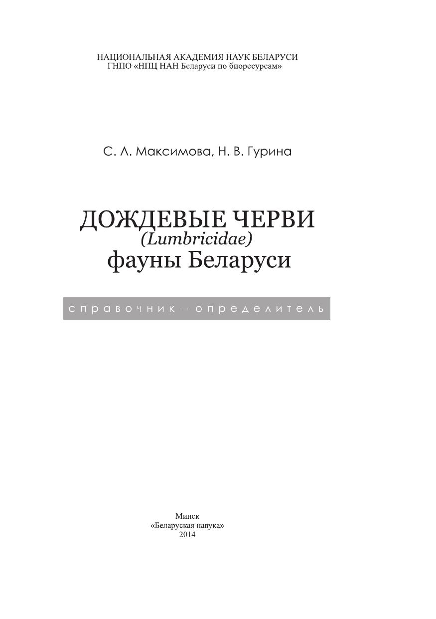 Дождевые черви (Lumbricidae) фауны Беларуси: справочник-определитель