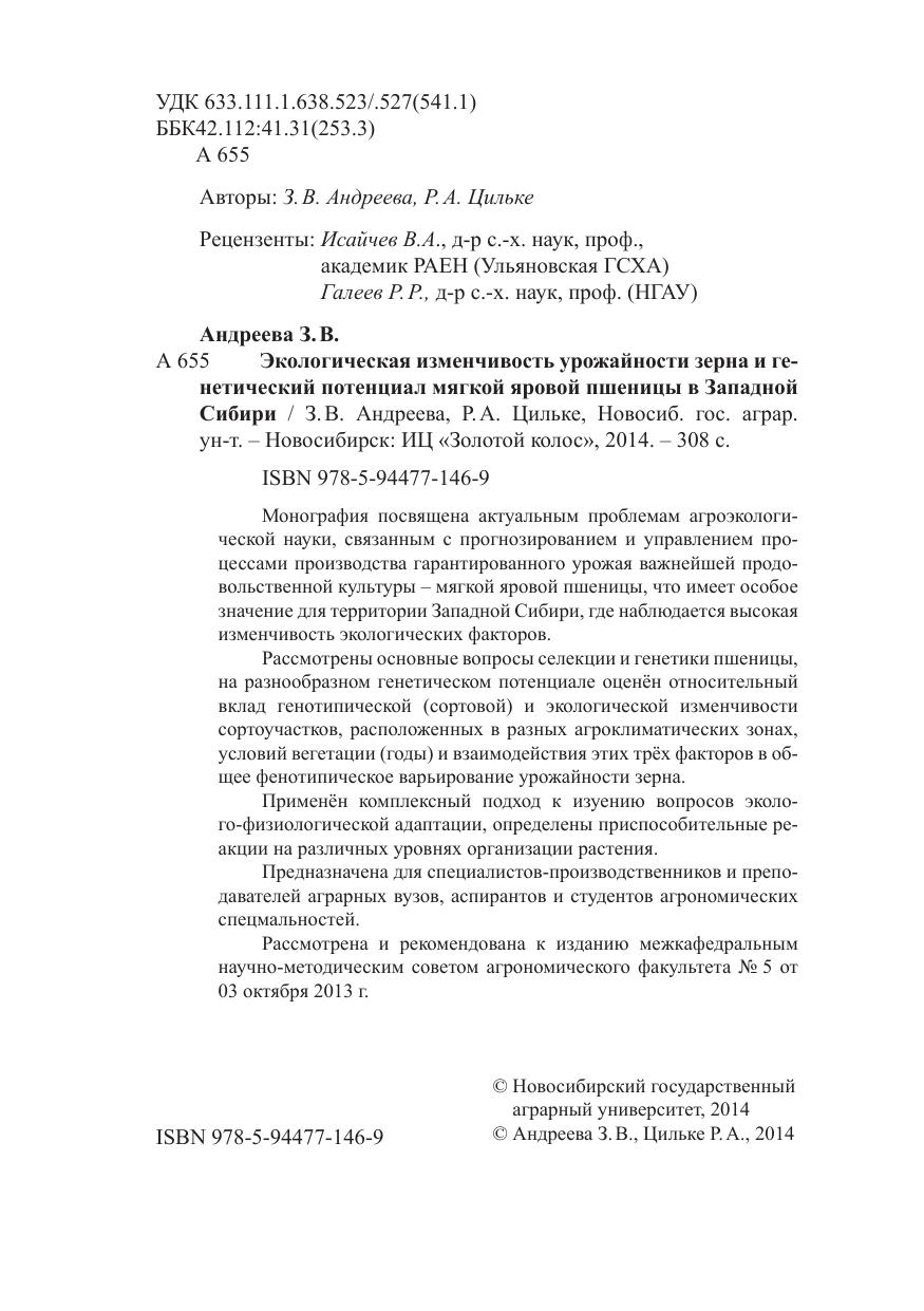 Монография посвящена актуальным проблемам агроэкологической науки, связанным с прогнозированием и управлением процессами производства гарантированного урожая важнейшей продовольственной культуры – мягкой яровой пшеницы, что имеет особое значение для территории Западной Сибири, где наблюдается высокая изменчивость экологических факторов. Рассмотрены основные вопросы селекции и генетики пшеницы, на разнообразном генетическом потенциале оценён относительный вклад генотипической (сортовой) и экологической изменчивости сортоучастков, расположенных в разных агроклиматических зонах, условий вегетации (годы) и взаимодействия этих трёх факторов в общее фенотипическое варьирование урожайности зерна. Применён комплексный подход к изуению вопросов эколого-физиологической адаптации, определены приспособительные реакции на различных уровнях организации растения. Предназначена для специалистов-производственников и преподавателей аграрных вузов, аспирантов и студентов агрономических специальностей.