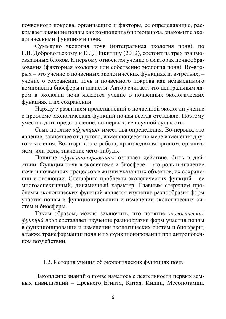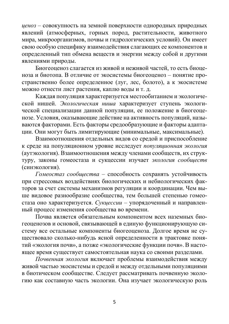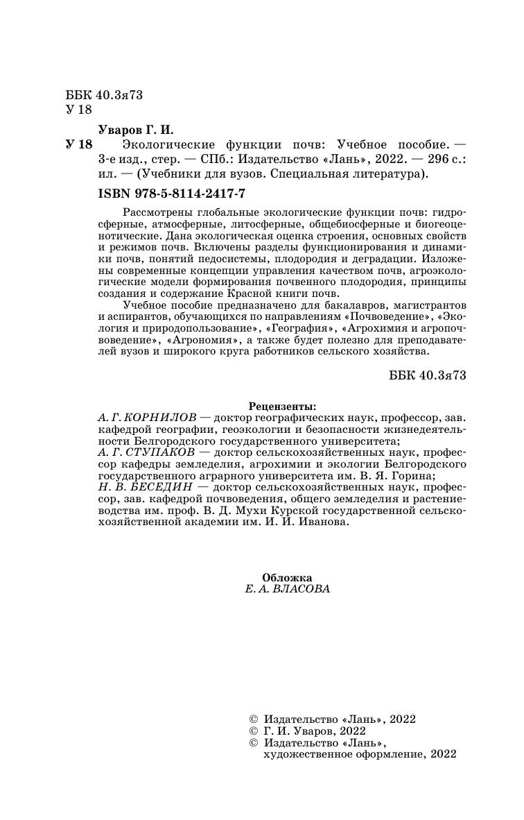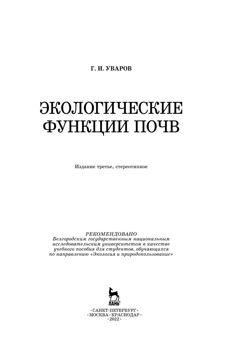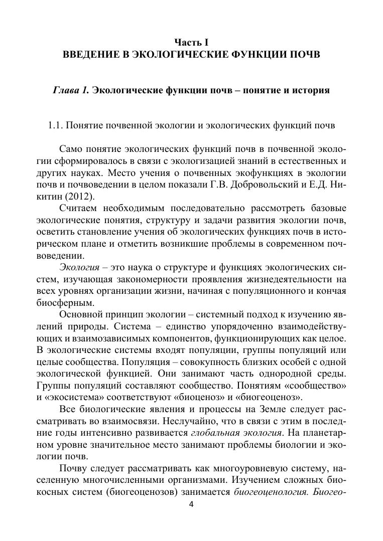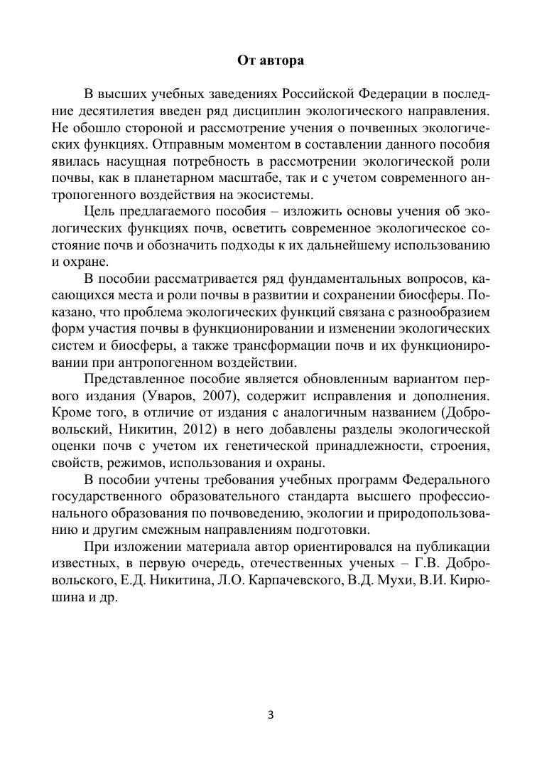 Рассмотрены глобальные экологические функции почв: гидросферные, атмосферные, литосферные, общебиосферные и биогеоценотические. Дана экологическая оценка строения, основных свойств и режимов почв. Включены разделы функционирования и динамики почв, понятий педосистемы, плодородия и деградации. Изложены современные концепции управления качеством почв, агроэкологиче-ские модели формирования почвенного плодородия, принципы создания и содержание Красной книги почв. Учебное пособие предназначено для бакалавров, магистрантов и аспирантов, обучающихся по направлениям «Почвоведение», «Экология и природопользование», «География», «Агрохимия и агропочвоведение», «Агрономия», а также будет полезно для преподавателей вузов и широкого круга работников сельского хозяйства.
