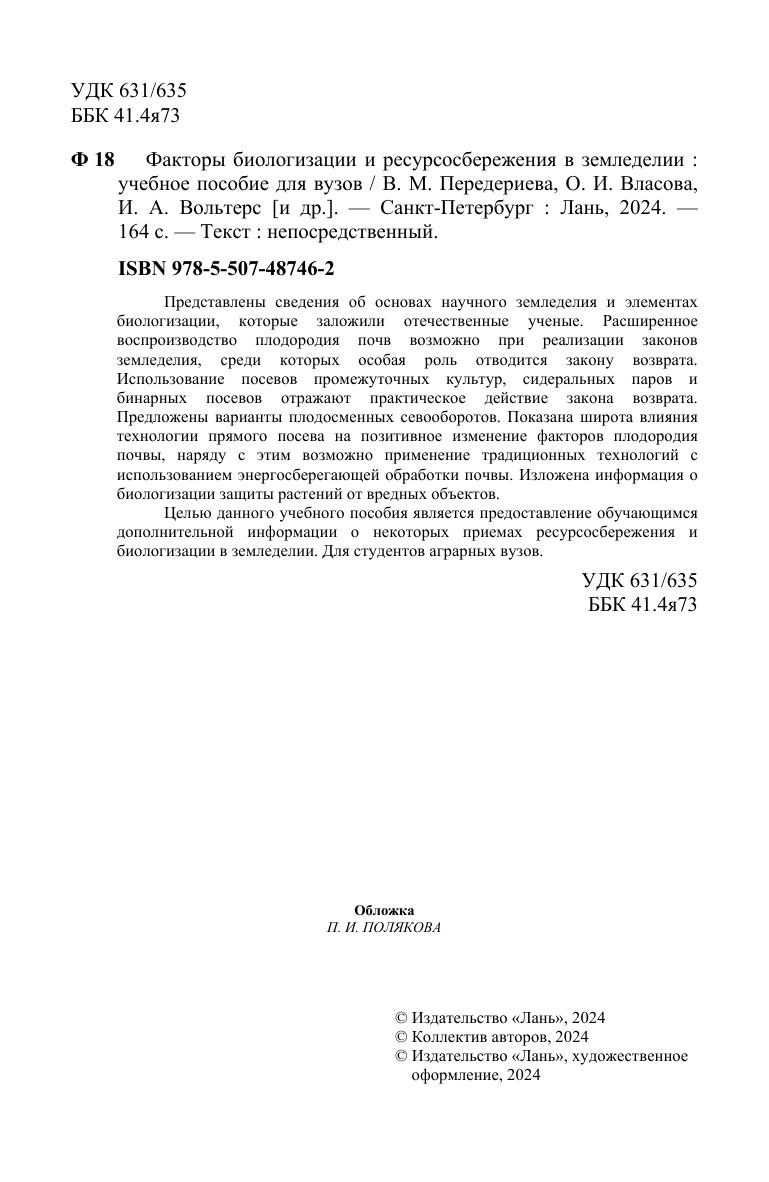 Представлены сведения об основах научного земледелия и элементах биологизации, которые заложили отечественные ученые. Расширенное воспроизводство плодородия почв возможно при реализации законов земледелия, среди которых особая роль отводится закону возврата. Использование посевов промежуточных культур, сидеральных паров и бинарных посевов отражают практическое действие закона возврата. Предложены варианты плодосменных севооборотов. Показана широта влияния технологии прямого посева на позитивное изменение факторов плодородия почвы, наряду с этим возможно применение традиционных технологий с использованием энергосберегающей обработки почвы. Изложена информация о биологизации защиты растений от вредных объектов. Целью данного учебного пособия является предоставление обучающимся дополнительной информации о некоторых приемах ресурсосбережения и биологизации в земледелии. Для студентов аграрных вузов.