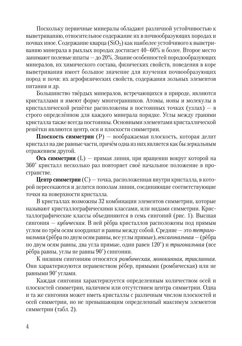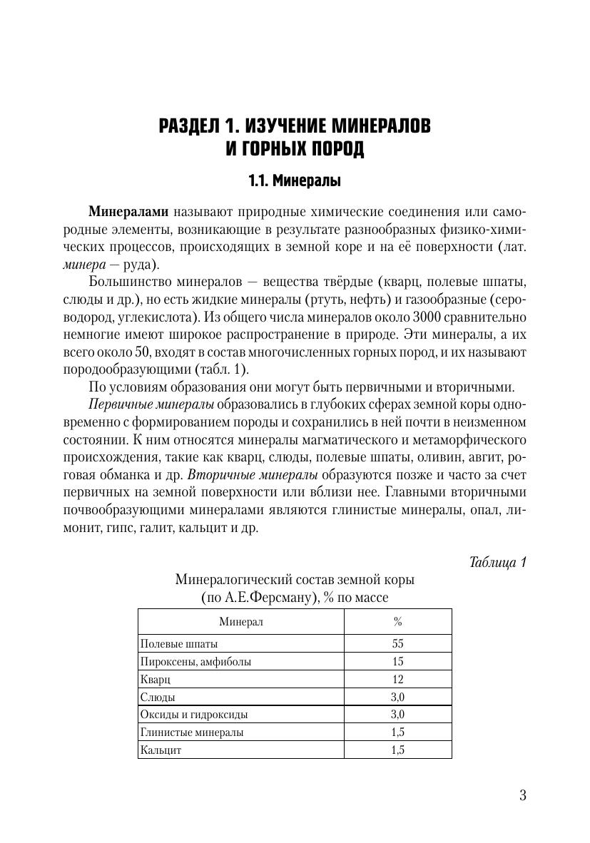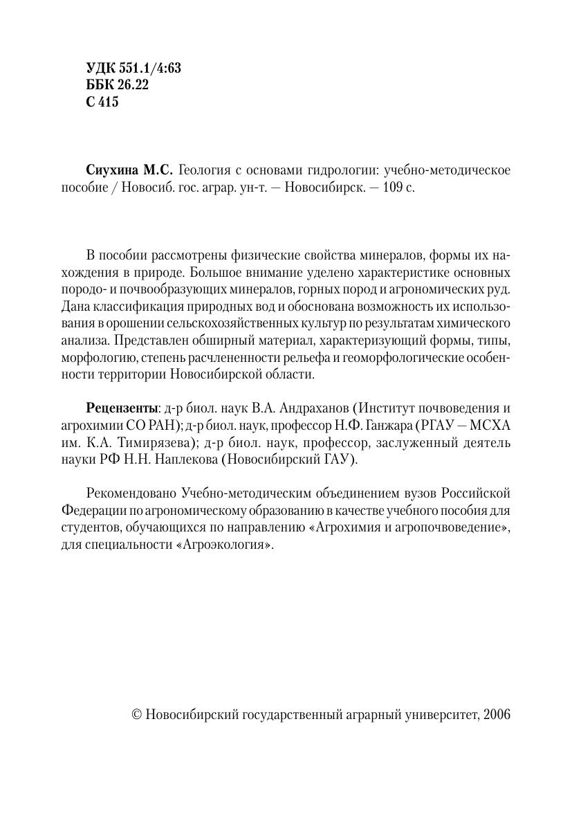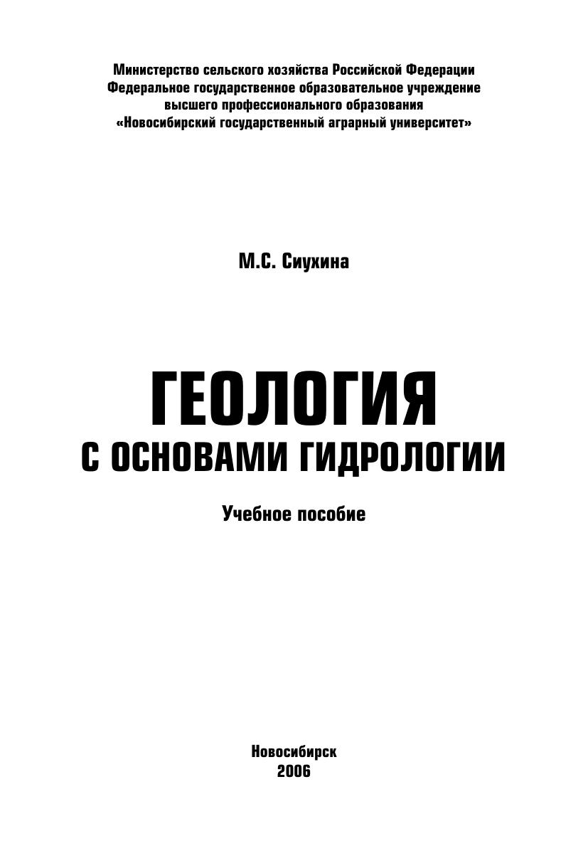 В пособии рассмотрены физические свойства минералов, формы их нахождения в природе. Большое внимание уделено характеристике основных породо- и почвообразующих минералов, горных пород и агрономических руд. Дана классификация природных вод и обоснована возможность их использования в орошении сельскохозяйственных культур по результатам химического анализа. Представлен обширный материал, характеризующий формы, типы, морфологию, степень расчлененности рельефа и геоморфологические особенности территории Новосибирской области.