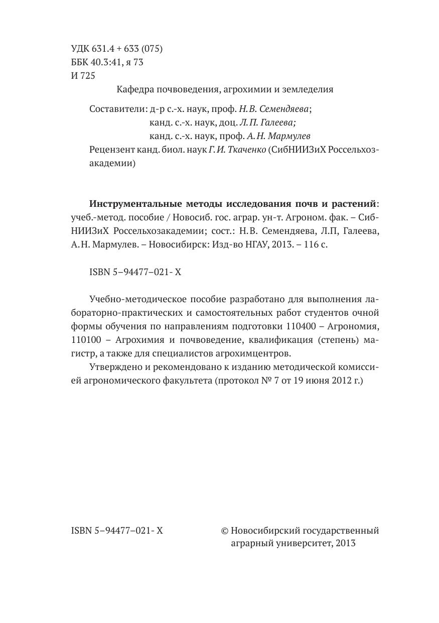 Учебно-методическое пособие разработано для выполнения лабораторно-практических и самостоятельных работ студентов очной формы обучения по направлениям подготовки 110400 – Агрономия, 110100 – Агрохимия и почвоведение, квалификация (степень) магистр, а также для специалистов агрохимцентров.