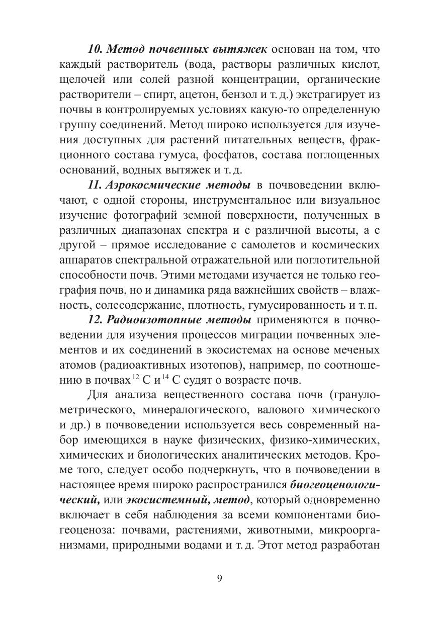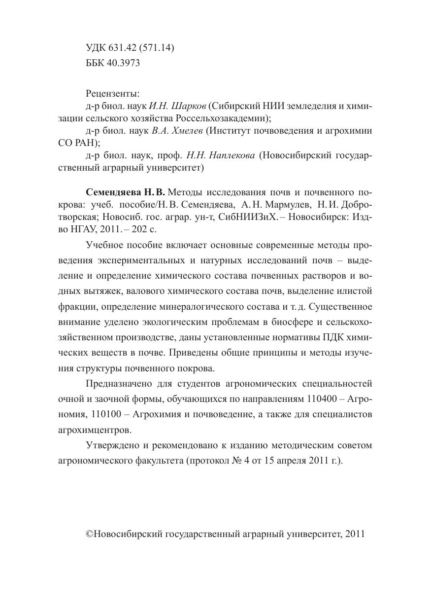 Учебное пособие включает основные современные методы проведения экспериментальных и натурных исследований почв – выделение и определение химического состава почвенных растворов и водных вытяжек, валового химического состава почв, выделение илистой фракции, определение минералогического состава и т. д. Существенное внимание уделено экологическим проблемам в биосфере и сельскохозяйственном производстве, даны установленные нормативы ПДК химических веществ в почве. Приведены общие принципы и методы изучения структуры почвенного покрова. Предназначено для студентов агрономических специальностей очной и заочной формы, обучающихся по направлениям 110400 – Агрономия, 110100 – Агрохимия и почвоведение, а также для специалистов агрохимцентров.