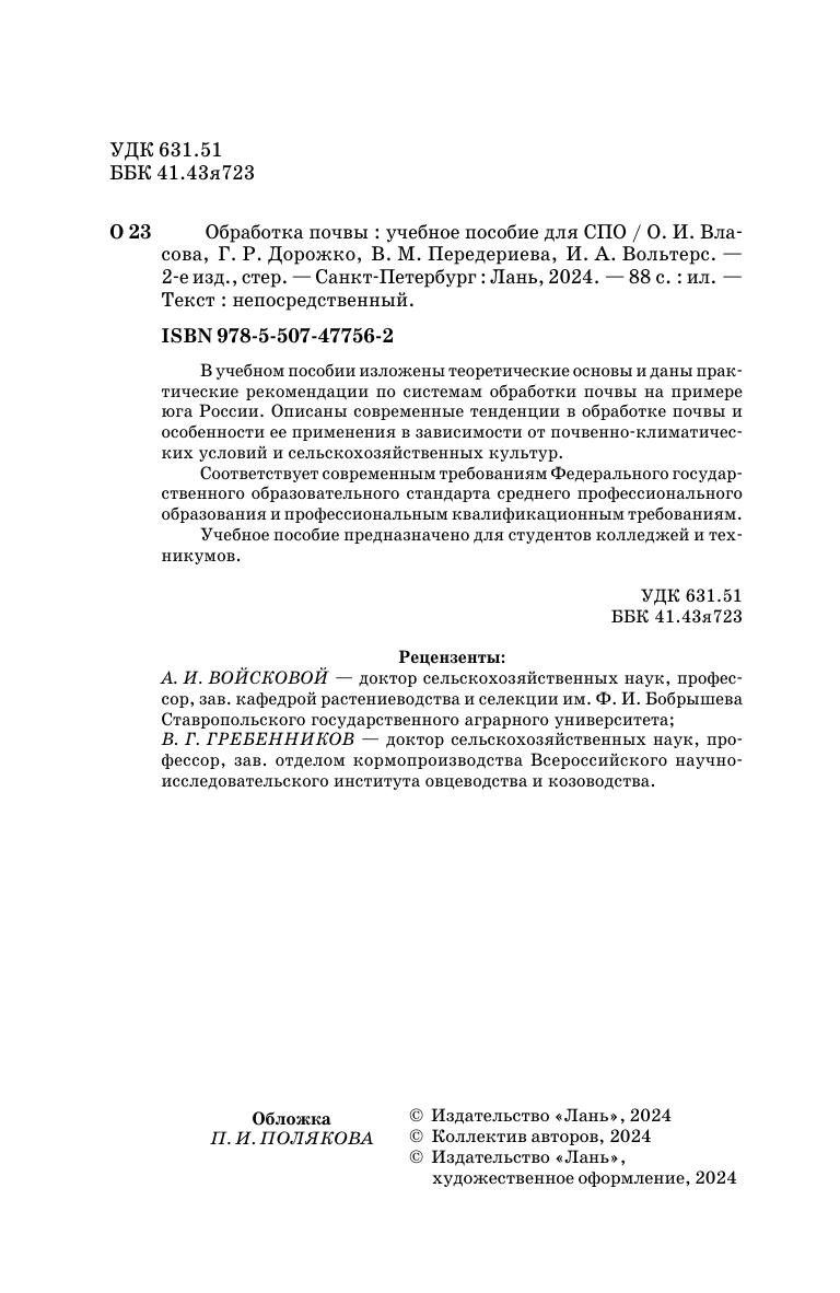 В учебном пособии изложены теоретические основы и даны практические рекомендации по системам обработки почвы на примере юга России. Описаны современные тенденции в обработке почвы и особенности ее применения в зависимости от почвенно-климатических условий и сельскохозяйственных культур. Соответствует современным требованиям Федерального государственного образовательного стандарта среднего профессионального образования и профессиональным квалификационным требованиям. Учебное пособие предназначено для студентов колледжей и техникумов.