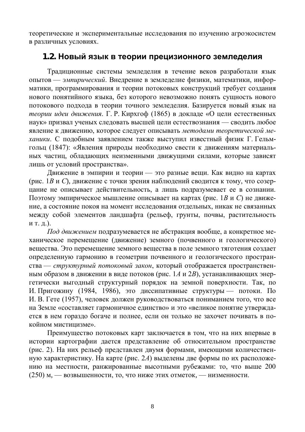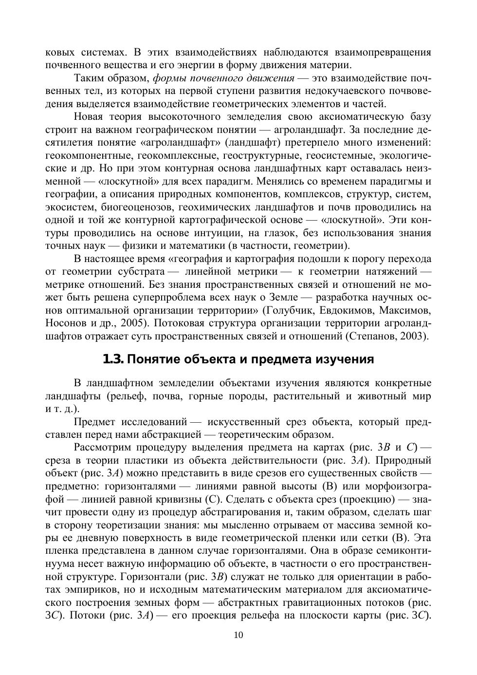В учебном пособии даются принципы и приемы использования метода пластики рельефа применительно к технологии построения современных точных систем земледелия. В пособии наглядно представлены методы построения математически точных почвенных карт, представляющих почвенные тела в форме образов геометродинамики — потоков, находящихся в непрерывном «движении», которые могут стать системами отсчета по-строения прецизионных систем земледелия. Путь к точному земледелию — обеспечение математической базой технологий составления почвенных карт, главным объектом изучения которых становится самая низшая так-сономическая и картографическая единица — почвенная разновидность. Изучив их, студенты и магистры смогут разрабатывать наглядные, точные и объективные почвенные карты, которые смогут представить почвенную поверхность как унифицированную систему.