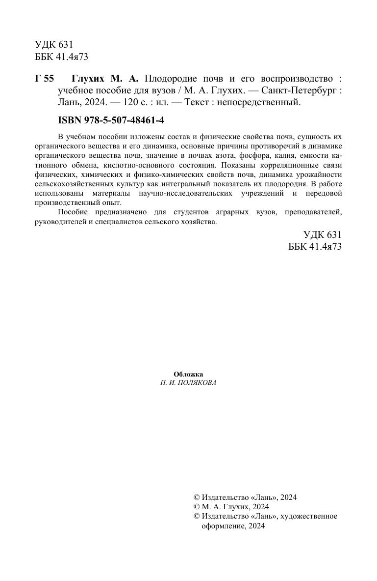 В учебном пособии изложены состав и физические свойства почв, сущность их органического вещества и его динамика, основные причины противоречий в динамике органического вещества почв, значение в почвах азота, фосфора, калия, емкости катионного обмена, кислотно-основного состояния. Показаны корреляционные связи физических, химических и физико-химических свойств почв, динамика урожайности сельскохозяйственных культур как интегральный показатель их плодородия. В работе использованы материалы научно-исследовательских учреждений и передовой производственный опыт. Пособие предназначено для студентов аграрных вузов, преподавателей, руководителей и специалистов сельского хозяйства.