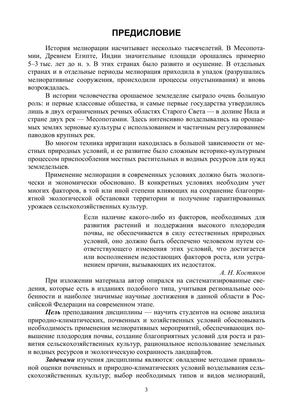 Рассмотрены вопросы сельскохозяйственной мелиорации, ее типы и виды, культуртехнические мелиорации, сельскохозяйственное водоснабжение, экологические проблемы мелиорации, ее экономическая эффективность.