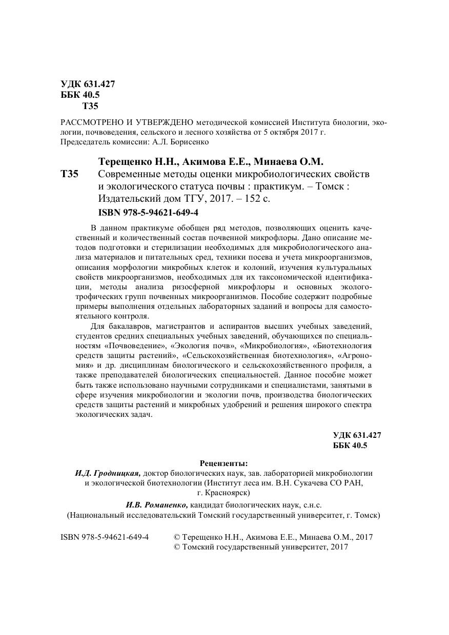 Современные методы оценки микробиологических свойств и экологического статуса почвы