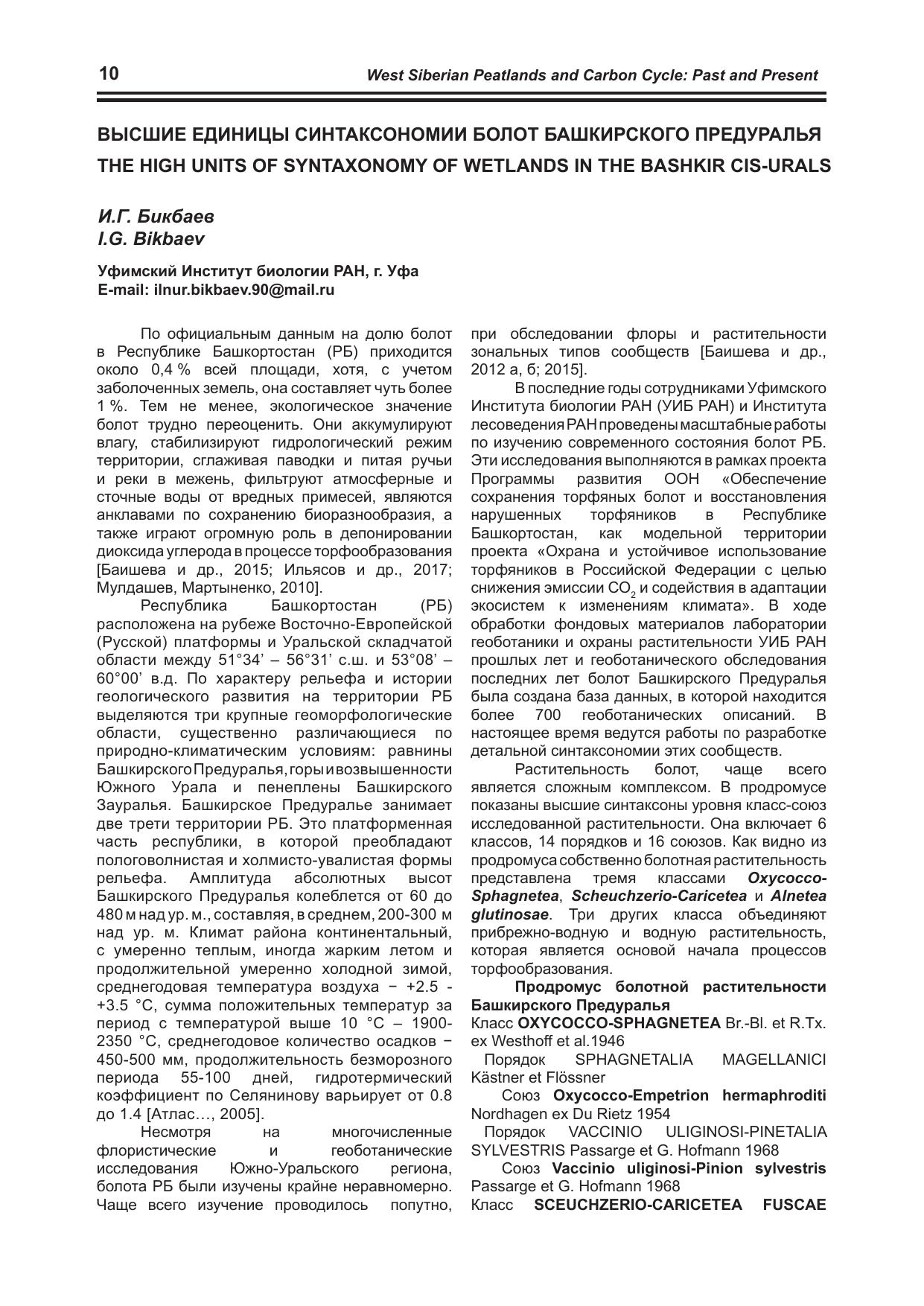 Западно-Сибирские торфяники и цикл углерода: прошлое и настоящее