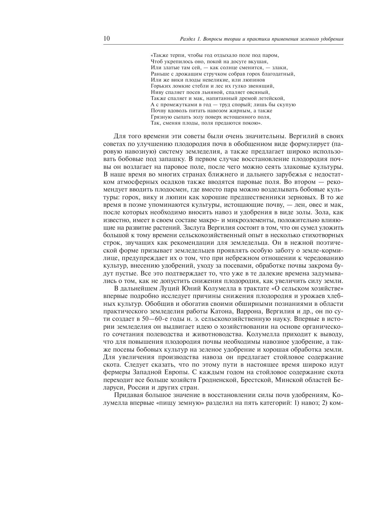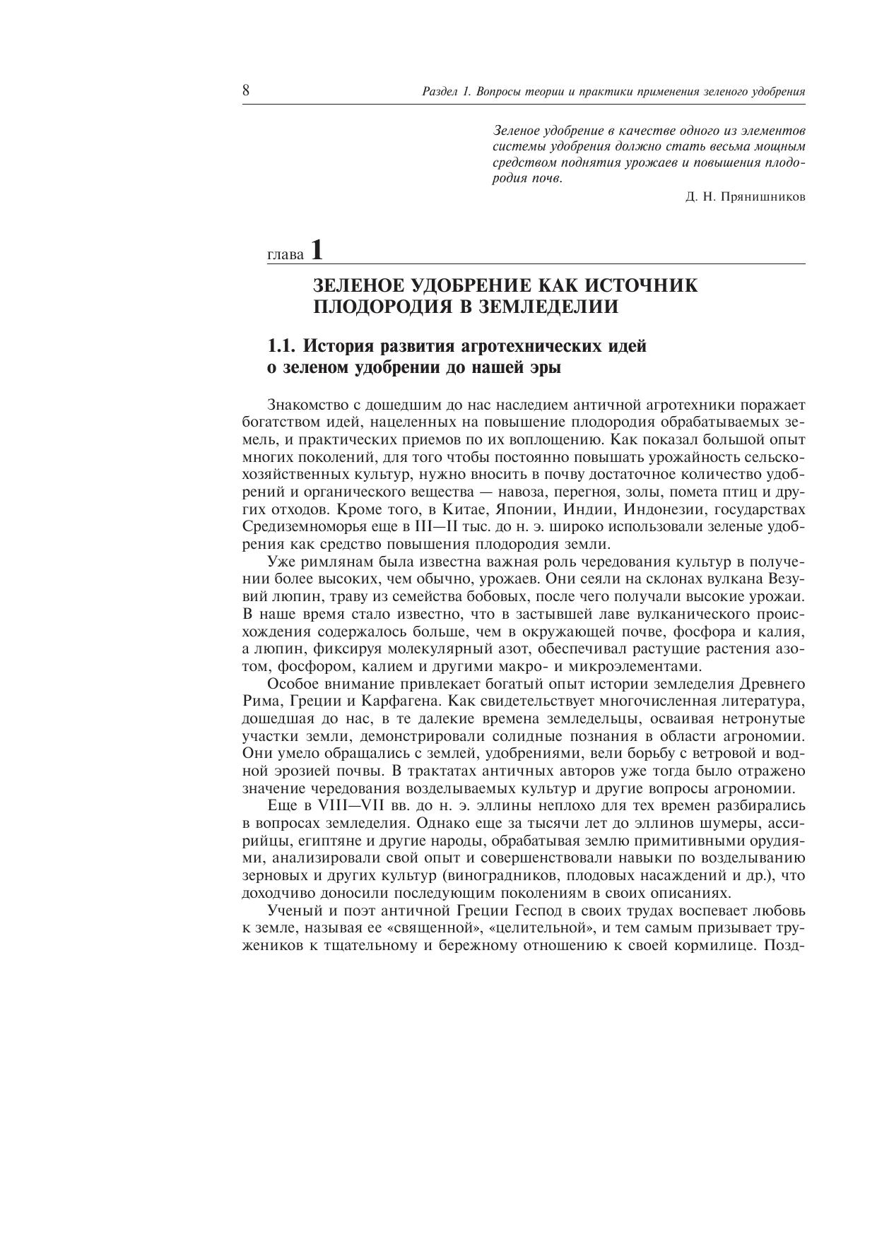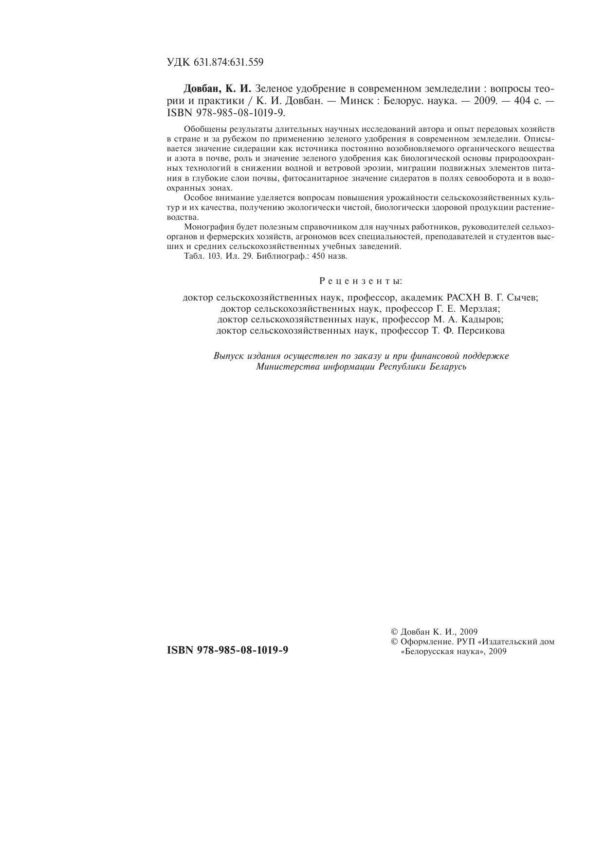 Обобщены результаты длительных научных исследований автора и опыт передовых хозяйств в стране и за рубежом по применению зеленого удобрения в современном земледелии. Описывается значение сидерации как источника постоянно возобновляемого органического вещества и азота в почве, роль и значение зеленого удобрения как биологической основы природоохранных технологий в снижении водной и ветровой эрозии, миграции подвижных элементов питания в глубокие слои почвы, фитосанитарное значение сидератов в полях севооборота и в водоохранных зонах. Особое внимание уделяется вопросам повышения урожайности сельскохозяйственных культур и их качества, получению экологически чистой, биологически здоровой продукции растениеводства. Монография будет полезным справочником для научных работников, руководителей сельхозорганов и фермерских хозяйств, агрономов всех специальностей, преподавателей и студентов высших и средних сельскохозяйственных учебных заведений.