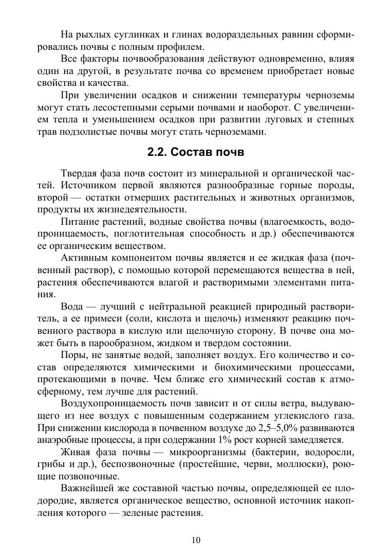 Учебное пособие написано в соответствии с требованиями ФГОС СПО. В нем в основах почвоведения даны представления о почве, ее составе, классификации и свойствах, плодородии и деградации, факторах почвообразования, агроэкологической оценке сельскохозяйственных культур, условий их возделывания и регулирования, структурах почвенного покрова. Показаны необходимость севооборотов, принципы размещения в них сельскохозяйственных культур и паров, приемы обработки почвы и оценка их качества, функции механических обработок, защиты растений от сорняков, болезней и вредителей, роль удобрений в формировании систем земледелия и их экологизации, разработки технологий возделывания сельскохозяйственных культур, экономической оценки систем, технологий и приемов выращивания растений. Пособие предназначено для студентов аграрных техникумов и колледжей, преподавателей, руководителей и специалистов сельского хозяйства.