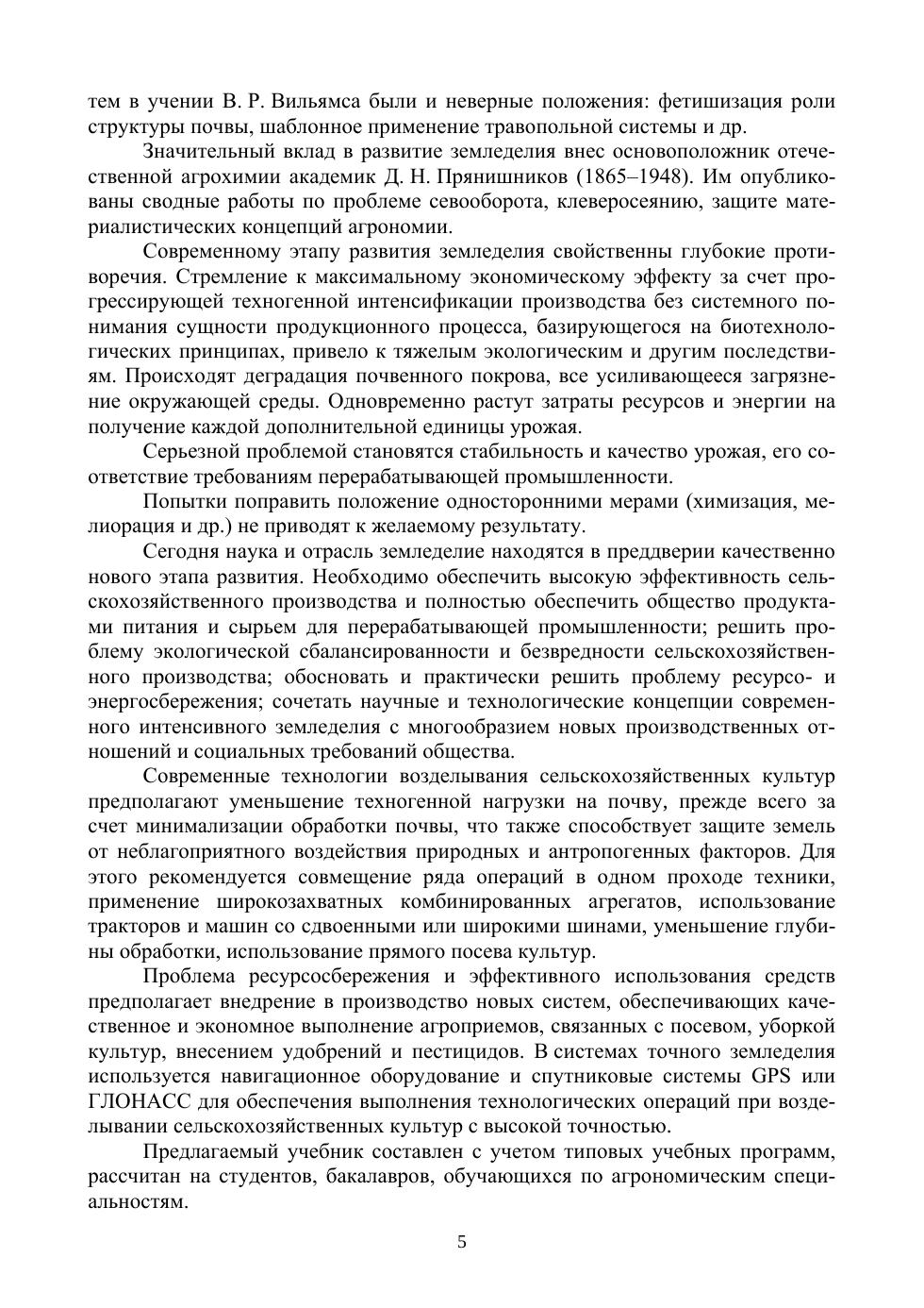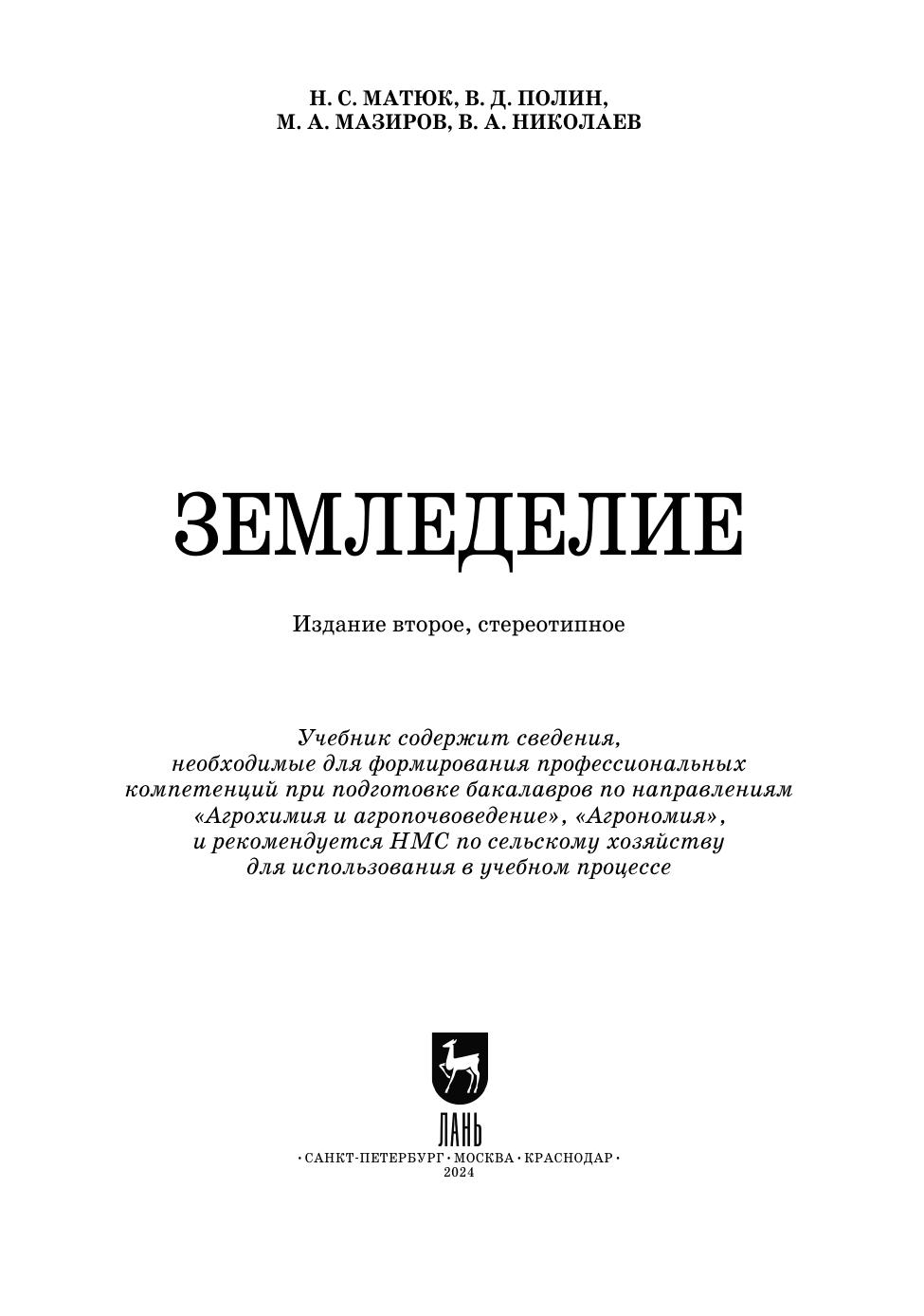 В учебнике изложены научные и практические основы земледелия. Освещены вопросы построения севооборотов. Дана характеристика сорных растений и методов борьбы с ними, представлены основные положения о механической обработке почвы, комплексе мероприятий по защите почв в районах проявления водной эрозии и дефляции. Изложена история развития систем земледелия и дана подробная характеристика их основных звеньев в современных условиях функционирования сельскохозяйственных пред-приятий различных форм собственности. Учебник предназначен для студентов вузов, обучающихся по направ-лениям подготовки «Агрохимия и агропочвоведение» и «Агрономия» (уро-вень образования — бакалавриат).