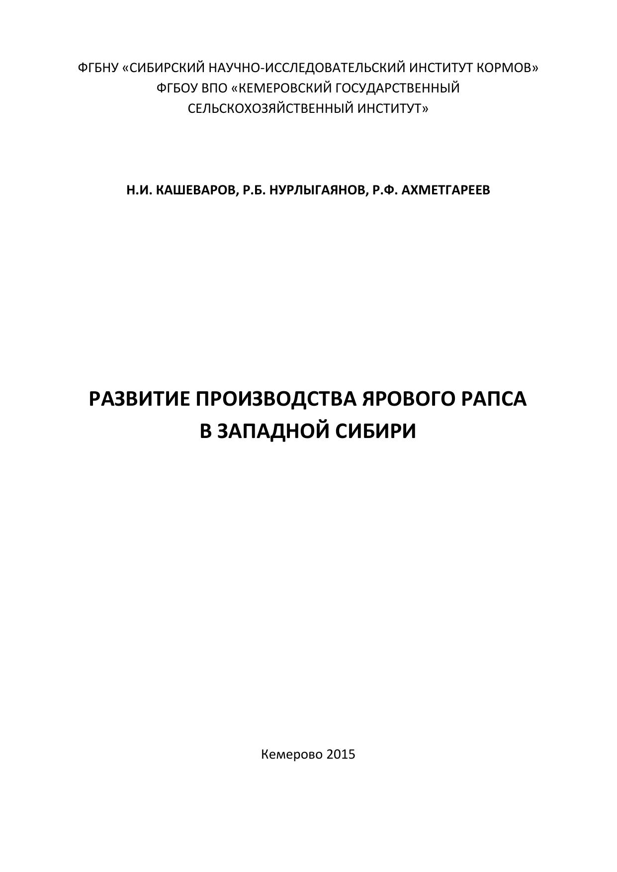 Научное издание освещает вопросы интенсификации производства ярового рапса в Западной Сибири.