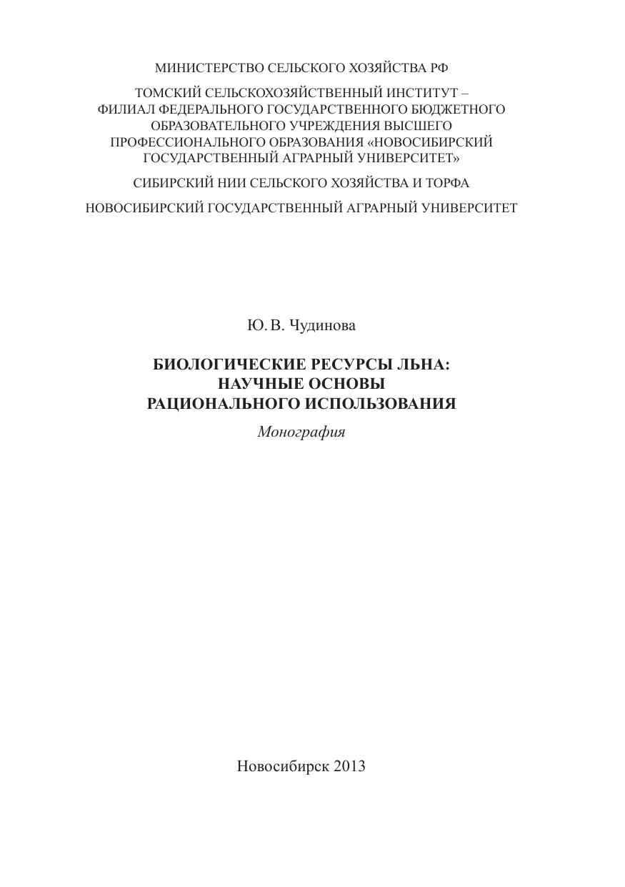 Биологические ресурсы льна: научные основы рационального использования