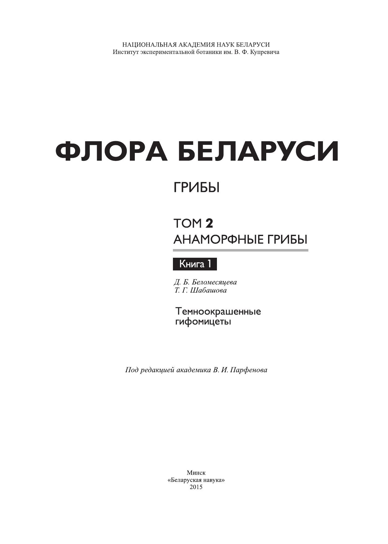 Флора Беларуси. Грибы. В 7 т. Т. 2. Анаморфные грибы. Кн. 1. Темноокрашенные гифомицеты