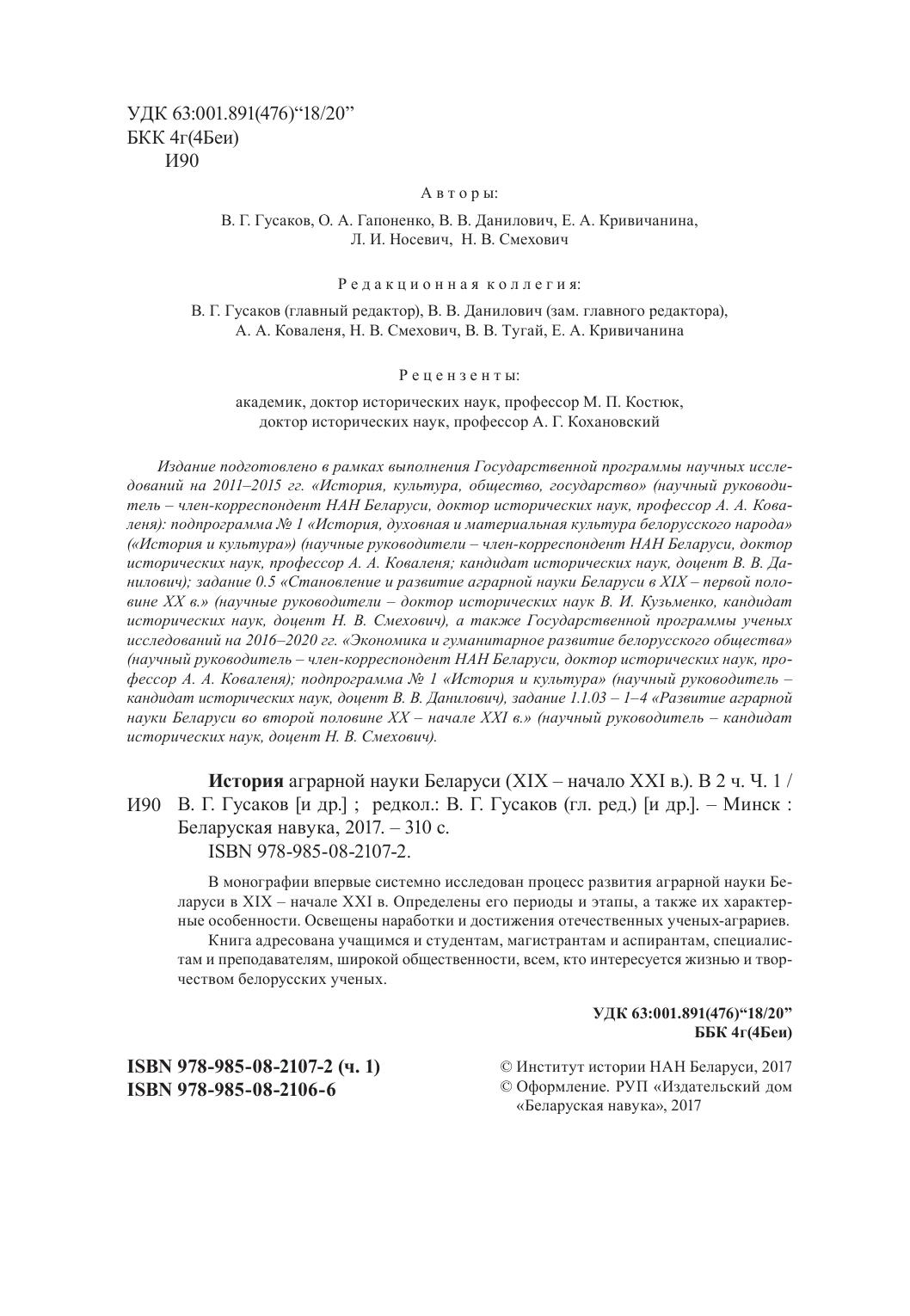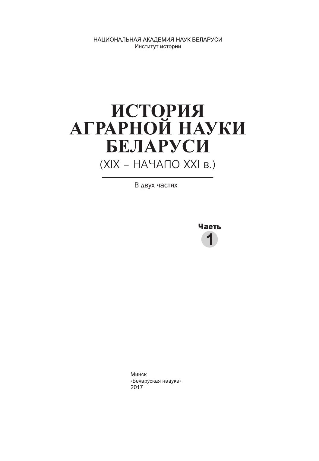 История аграрной науки Беларуси (XIX – начало XXI в.). В 2 ч. Ч. 1