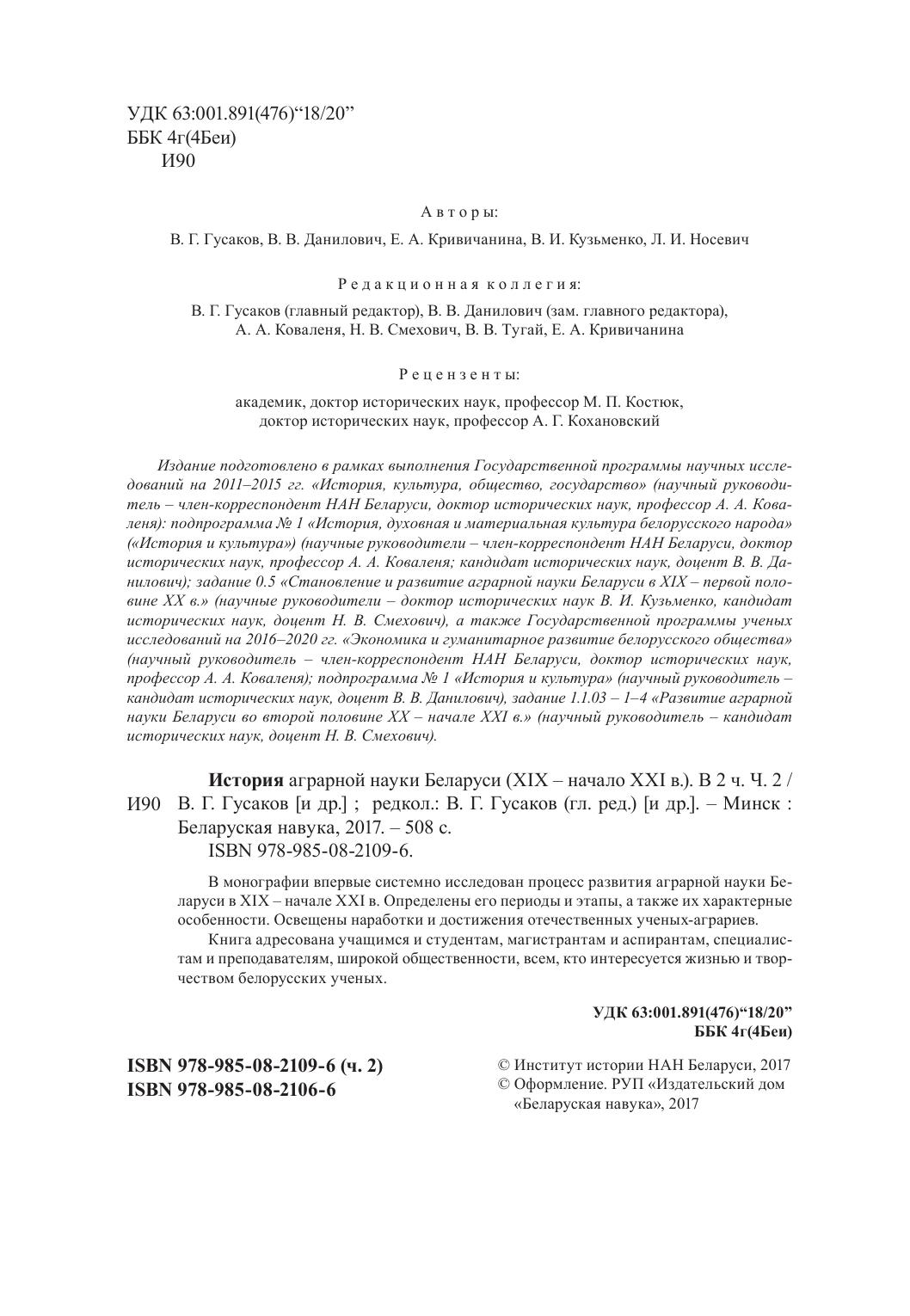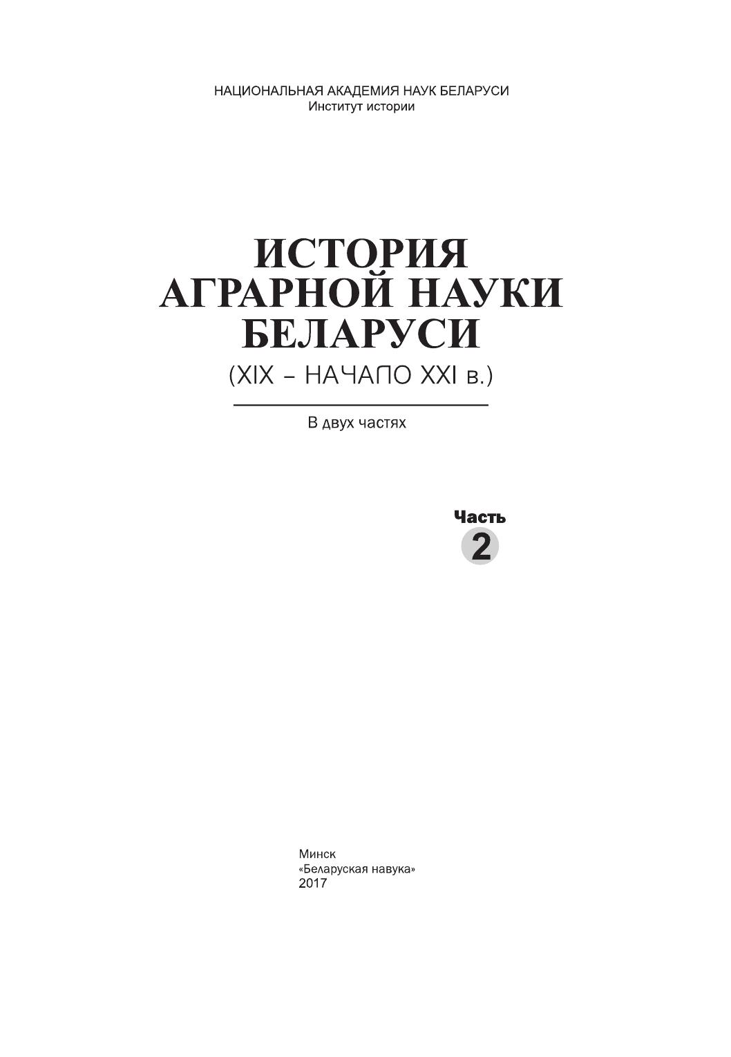 История аграрной науки Беларуси (XIX – начало XXI в.). В 2 ч. Ч. 2