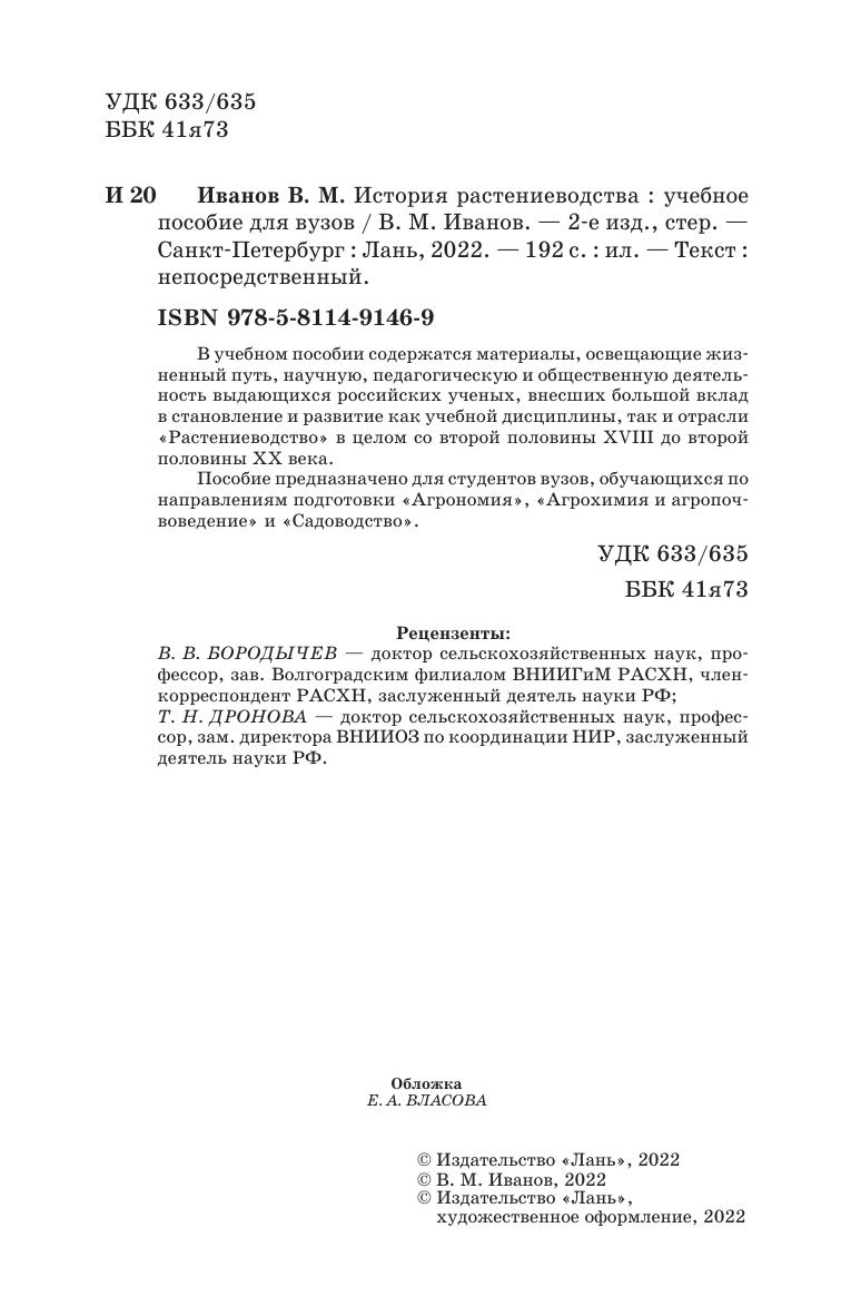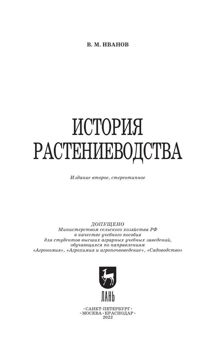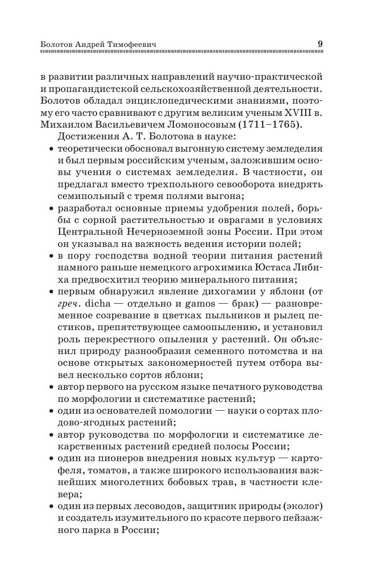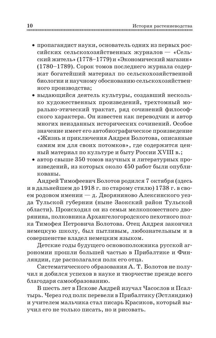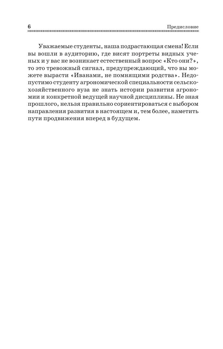 В учебном пособии содержатся материалы, освещающие жизненный путь, научную, педагогическую и общественную деятельность выдающихся российских ученых, внесших большой вклад в становле-ние и развитие как учебной дисциплины, так и отрасли «Растениеводство» в целом со второй половины XVIII до второй половины XX века. Пособие предназначено для студентов вузов, обучающихся по направлениям подготовки «Агрономия», «Агрохимия и агропочвоведение» и «Садоводство».