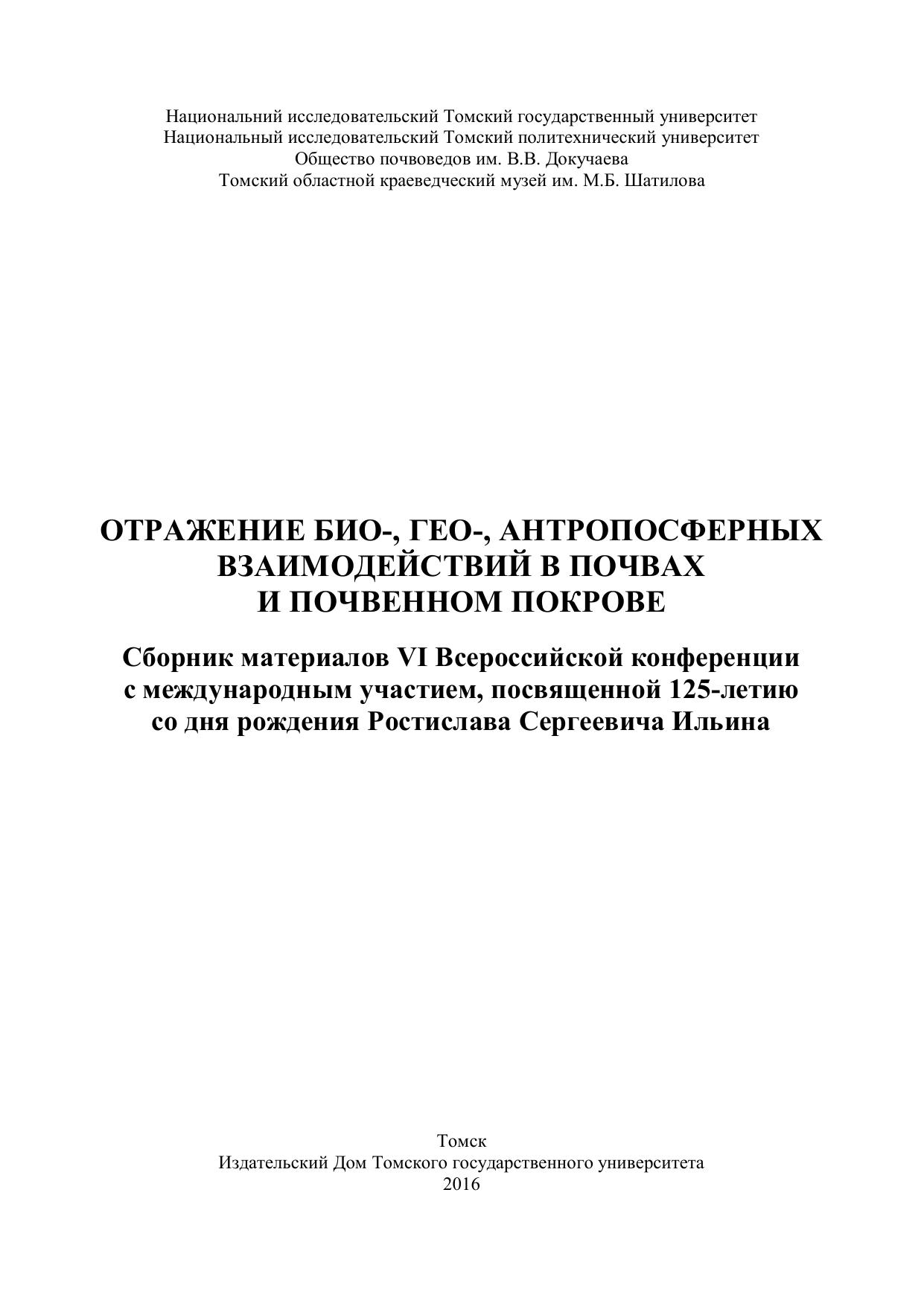 Отражение био-, гео- антропосферных взаимодействий в почвах и почвенном покрове
