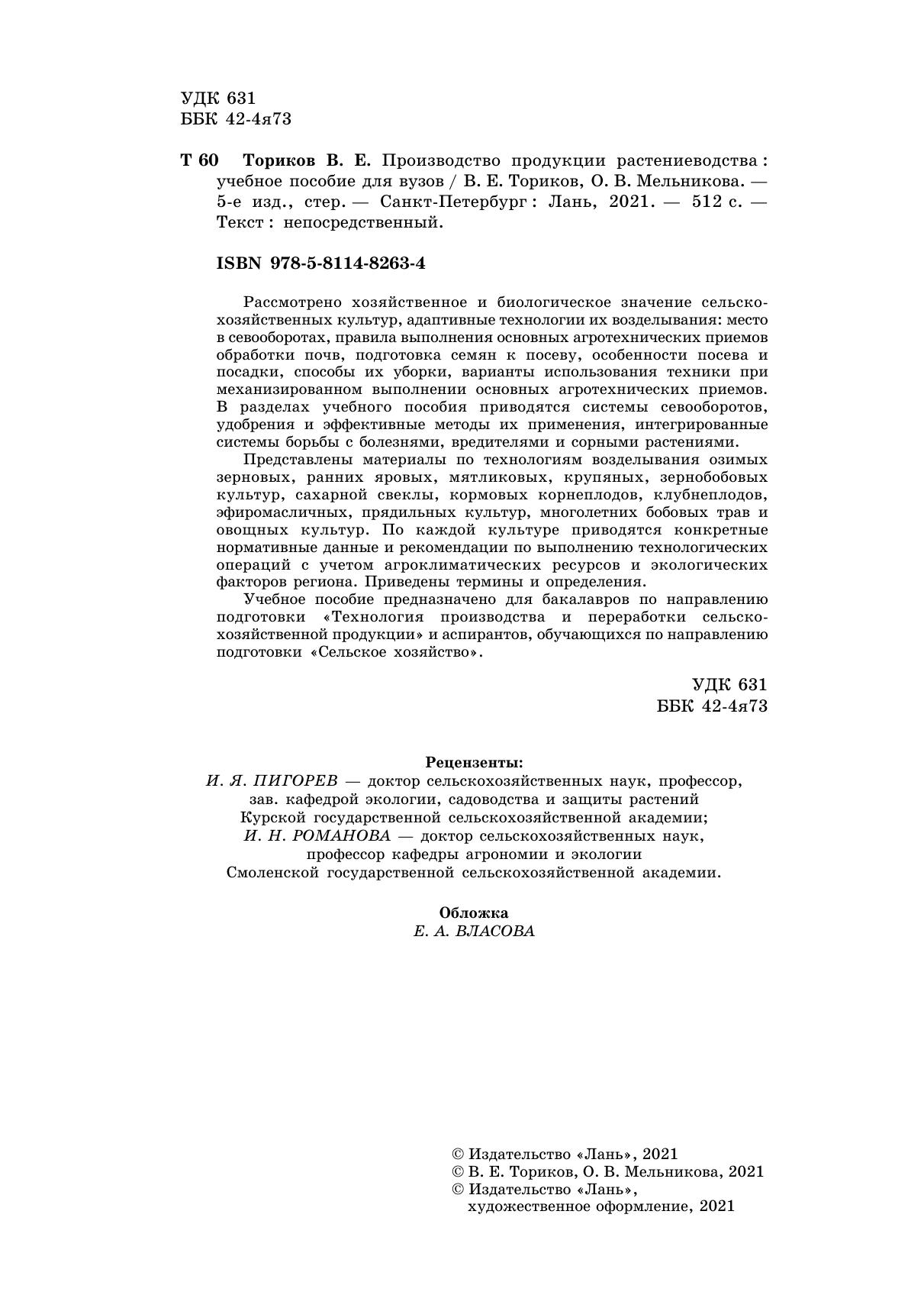 Рассмотрено хозяйственное и биологическое значение сельскохозяйственных культур, адаптивные технологии их возделывания: место в севооборотах, правила выполнения основных агротехнических приемов обработки почв, подготовка семян к посеву, особенности посева и посадки, способы их уборки, варианты использования техники при механизированном выполнении основных агротехнических приемов. В разделах учебного пособия приводятся системы севооборотов, удобрения и эффективные методы их применения, интегрированные системы борьбы с болезнями, вредителями и сорными растениями.
