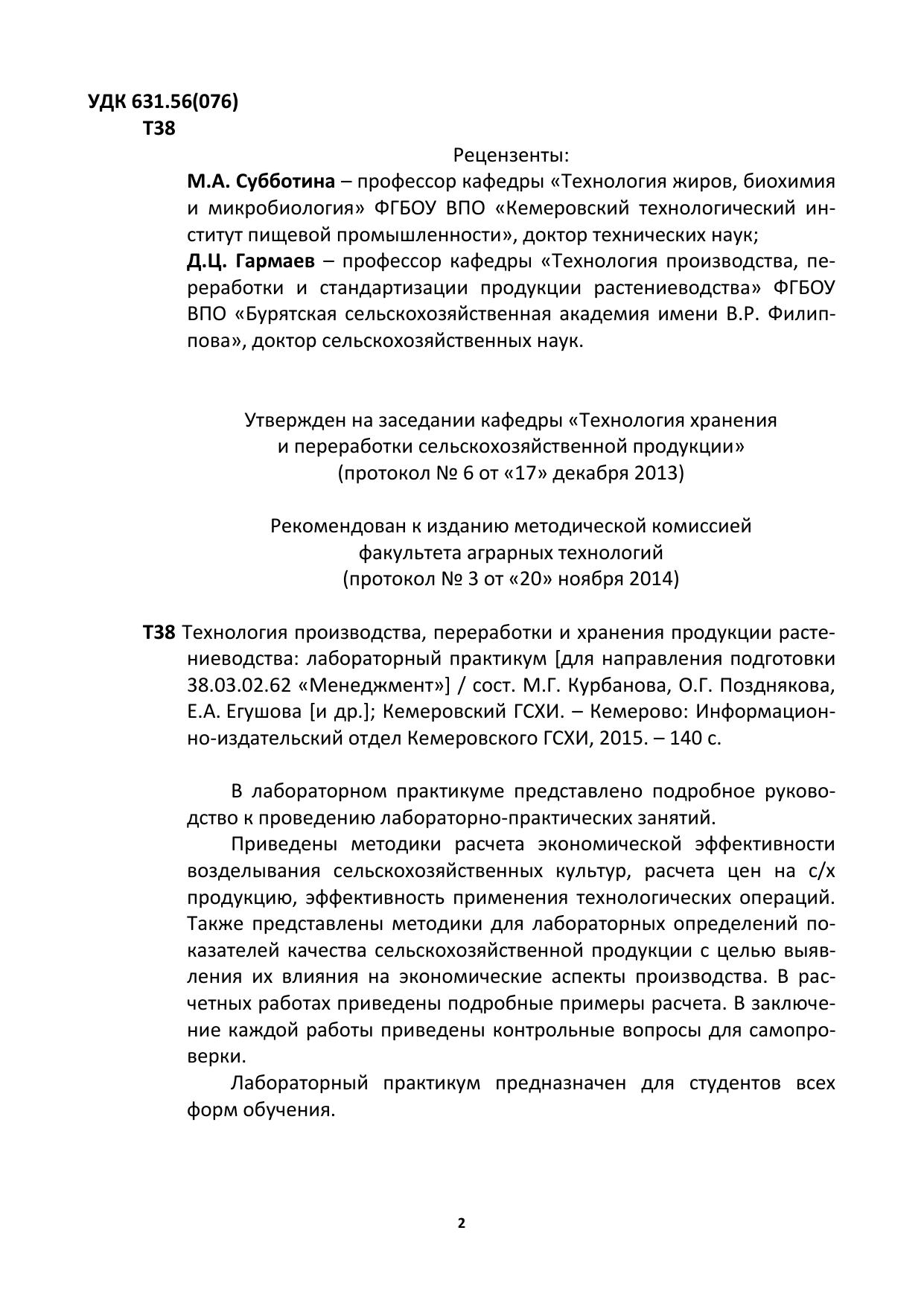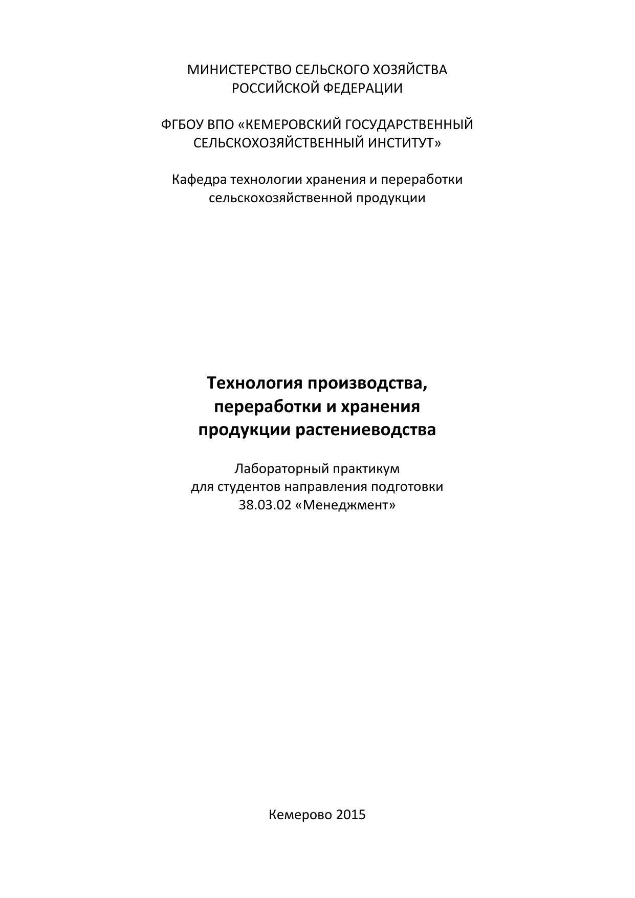 Технология производства, переработки и хранения продукции растениеводства: лабораторный практикум