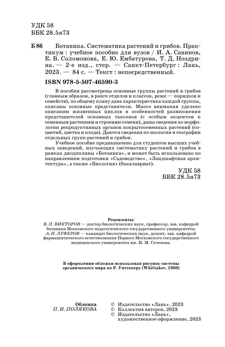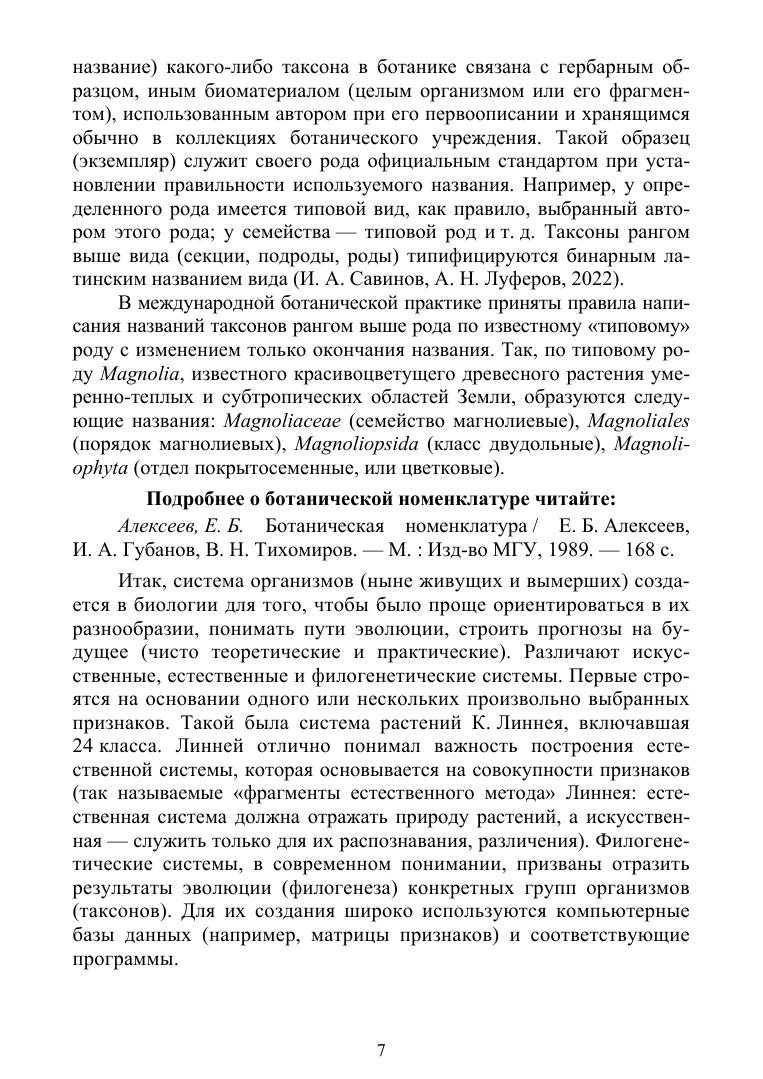 В пособии рассмотрены основные группы растений и грибов (главным образом, в ранге отделов и классов, реже – порядков и семейств), по общему плану дана характеристика каждой группы, описаны основные представители. Много внимания уделено описанию жизненных циклов и особенностей размножения представителей основных таксонов (с особым акцентом к семенным растениям и строению семени), даны сведения по морфологии репродуктивных органов покрытосеменных растений (соцветий, цветка и плода). Даются сведения по экологии и географии отдельных групп растений и грибов. Учебное пособие предназначено студентам высших учебных заведений, изучающим систематику растений и грибов в рамках дисциплины «Ботаника» и может быть использовано по направлениям подготовки «Садоводство», «Ландшафтная архитектура», а также «Биология» (бакалавриат).