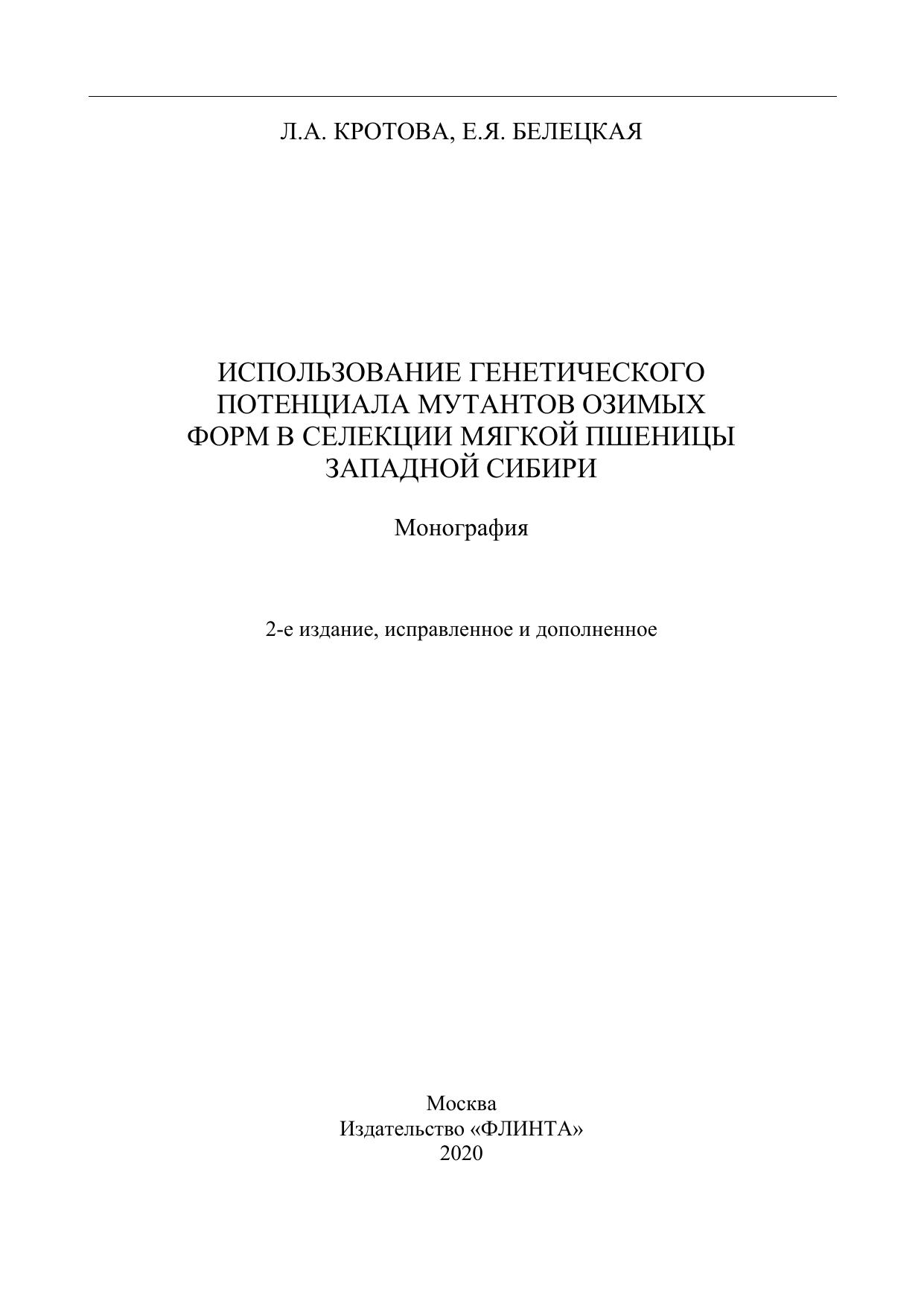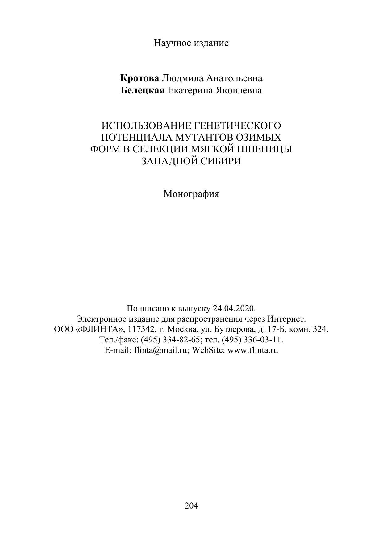 использованию сибирского генофонда мутантов озимой пшеницы. Полу-