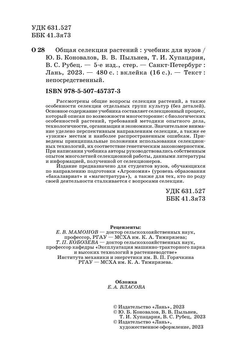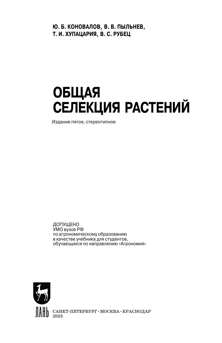 Рассмотрены общие вопросы селекции растений, а также особенности селекции отдельных групп культур, без деталей. Основное содержание учебника составляет селекционный процесс, который описан по возможности многосторонне: с биологических особенностей растений, требований методики опытного дела, технологичности, организации и экономики. Значительное внимание уделено перспективным направлениям селекции, а также ее узким местам и наиболее распространенным ошибкам. Приведены принципиальные положения использования селекционных технологий, их соответствие генетическим закономерностям. При написании учебника авторы руководствовались собственным опытом многолетней селекционной работы, данными литературы и информацией, полученной от селекционеров.Издание предназначено для студентов вузов, обучающихся по направлению подготовки Агрономия, уровень образования бакалавриат и магистратура, а также для тех, кто по роду своей деятельности сталкивается с вопросами селекции.