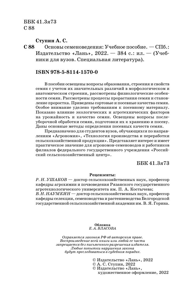 В пособии освещены вопросы образования, строения и свойств семян с учетом их значительных различий в морфологическом и анатомическом строении, рассмотрены физиологические особенности семян. Рассмотрены процессы прорастания семян и становление проростка. Приведены сортовые и посевные качества семян. Особое внимание уделено требованиям к посевному материалу. Показано влияние экологических и агротехнических факторов на урожайность и качество семян. Освещены вопросы послеуборочной обработки семян, подготовки их к хранению и посеву. Даны основные методы определения посевных качеств семян.