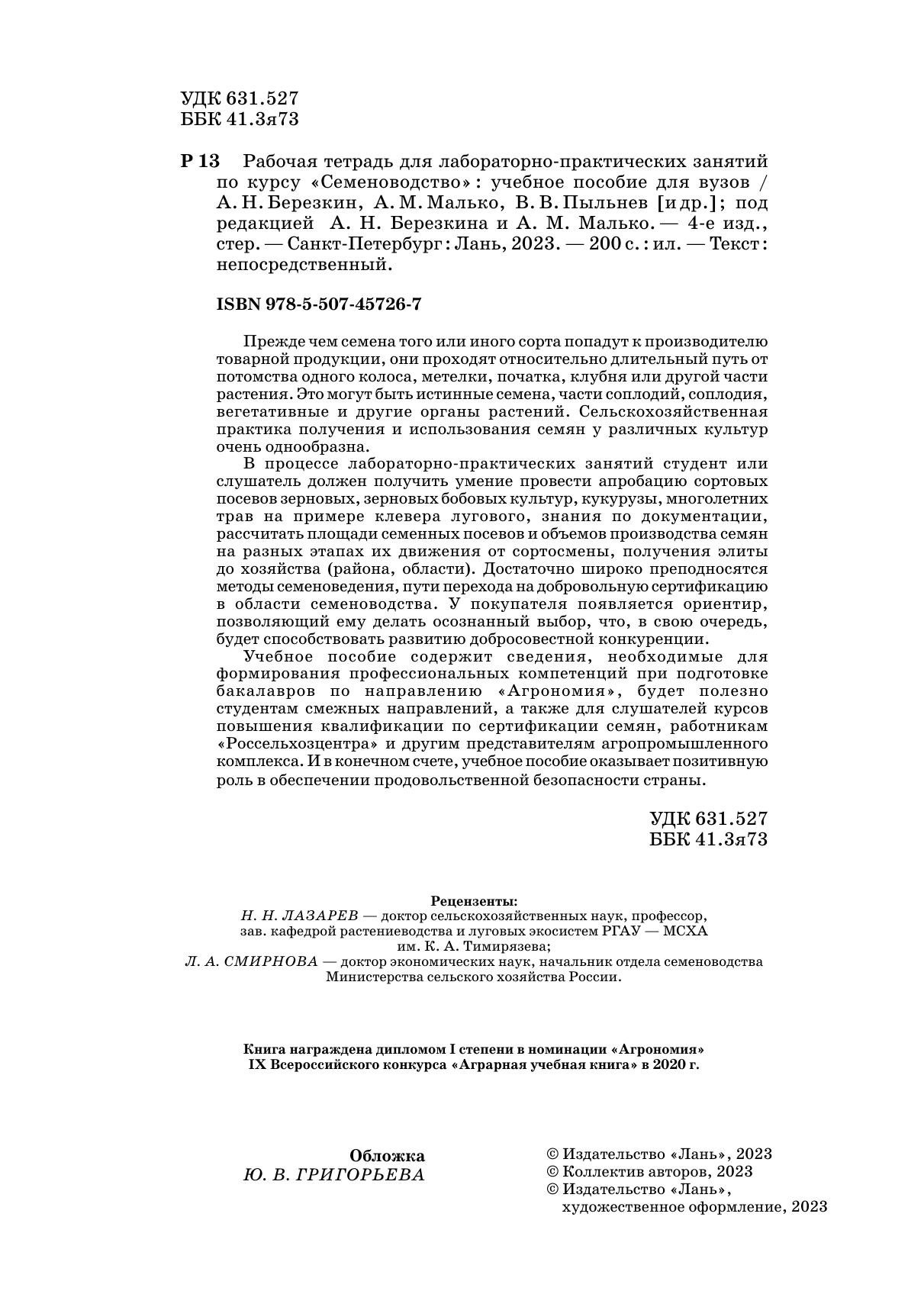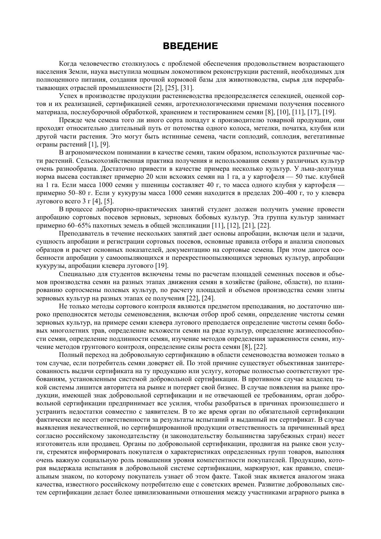 Прежде чем семена того или иного сорта попадут к производителю товарной продукции, они проходят относительно длительный путь от потомства одного колоса, метелки, початка, клубня или другой части растения. Это могут быть истинные семена, части соплодий, соплодия, вегетативные и другие органы растений. Сельскохозяйственная практика получения и использования семян у различных культур очень однообразна. В процессе лабораторно-практических занятий студент или слушатель должен получить умение провести апробацию сортовых посевов зерновых, зерновых бобовых культур, кукурузы, многолетних трав на примере клевера лугового, знания по документации, рассчитать площади семенных посевов и объемов производства семян на разных этапах их движения от сортосмены, получения элиты до хозяйства (района, области). Достаточно широко преподносятся методы семеноведения, пути перехода на добровольную сертификацию в области семеноводства. У покупателя появляется ориентир, позволяющий ему делать осознанный выбор, что, в свою очередь, будет способствовать развитию добросовестной конкуренции. Учебное пособие содержит сведения, необходимые для формирования профессиональных компетенций при подготовке бакалавров по направлению «Агрономия», будет полезно студентам смежных направлений, а также для слушателей курсов повышения квалификации по сертификации семян, работникам «Россельхозцентра» и другим представителям агропромышленного комплекса. И в конечном счете, учебное пособие оказывает позитивную роль в обеспечении продовольственной безопасности страны. Книга награждена дипломом I степени в номинации «Агрономия» IX Всероссийского конкурса «Аграрная учебная книга» в 2020 г.