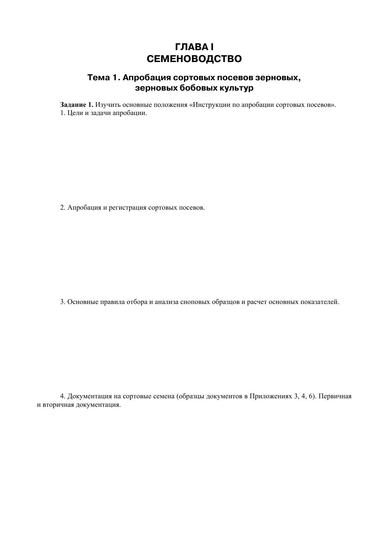 Рабочая тетрадь для лабораторно-практических занятий по курсу «Семеноводство»