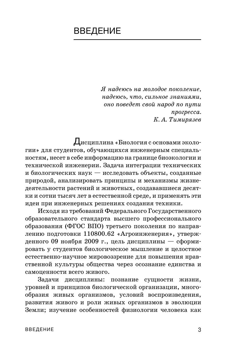 Учебное пособие по дисциплине «Биология с основами экологии» предназначено для студентов, обучающихся аграрным, экологическим и инженерным специальностям, несет в себе информацию на границе биологической экологии, бионики и технической инженерии. Задача интеграции технических, экологических и биологических наук – исследовать объекты созданные природой, анализировать принципы и механизмы жизнедеятельности растений и животных, возникших за десятки и сотни тысяч лет в естественной среде, и применять эти идеи при решении инженерных задач.