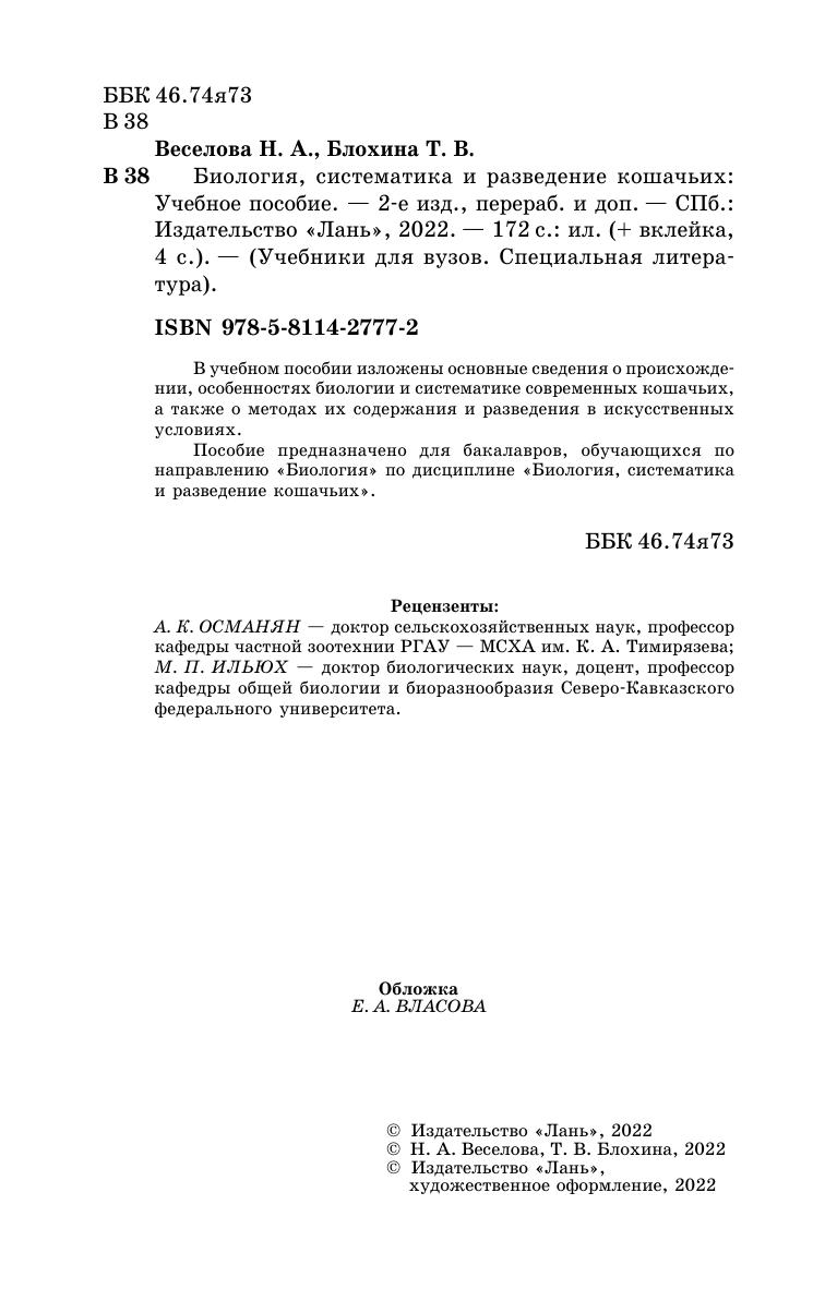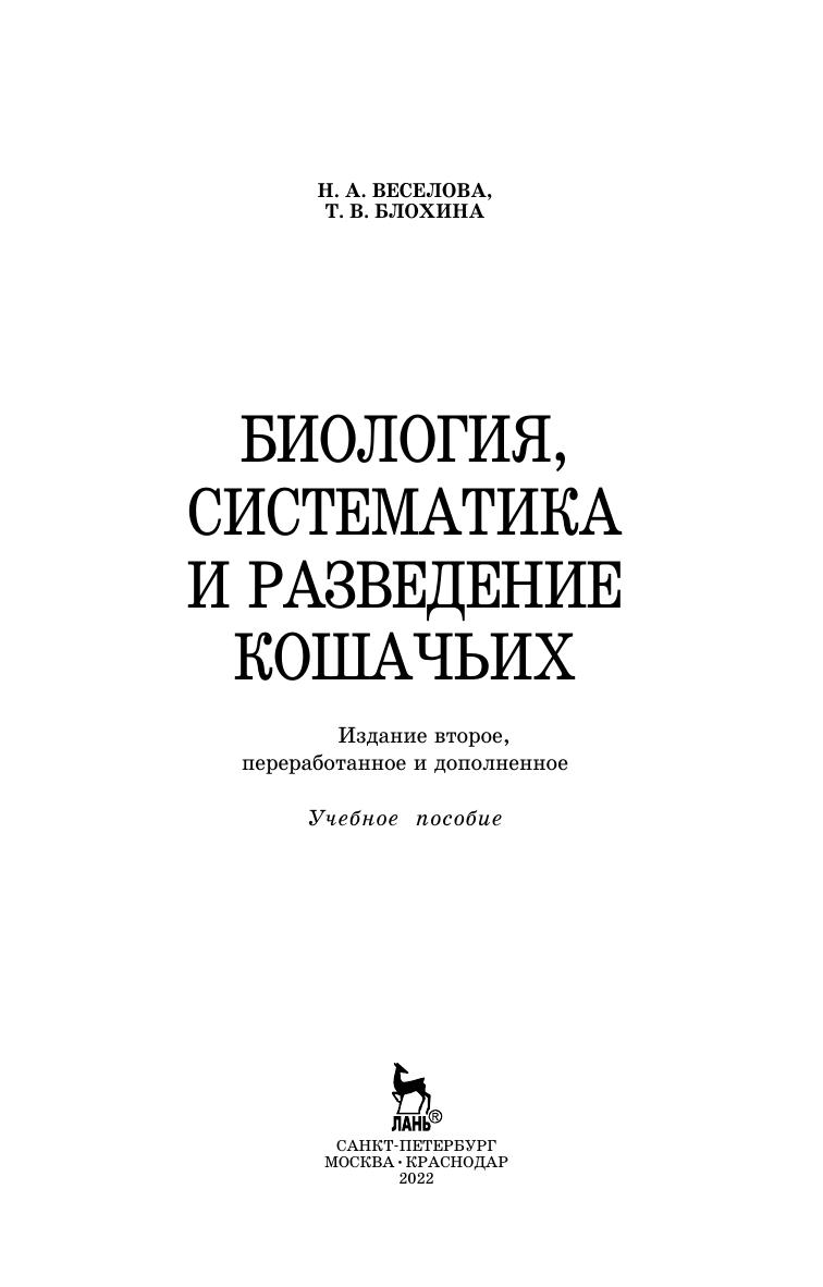 В учебном пособии изложены основные сведения о происхождении, особенностях биологии и систематике современных кошачьих, а также о методах их содержания и разведения в искусственных условиях. Пособие предназначено для бакалавров, обучающихся по направлению «Биология» по дисциплине «Биология, систематика и разведение кошачьих».