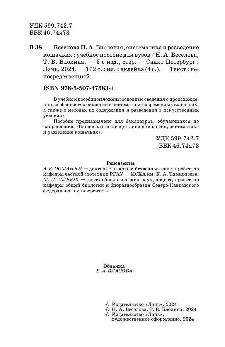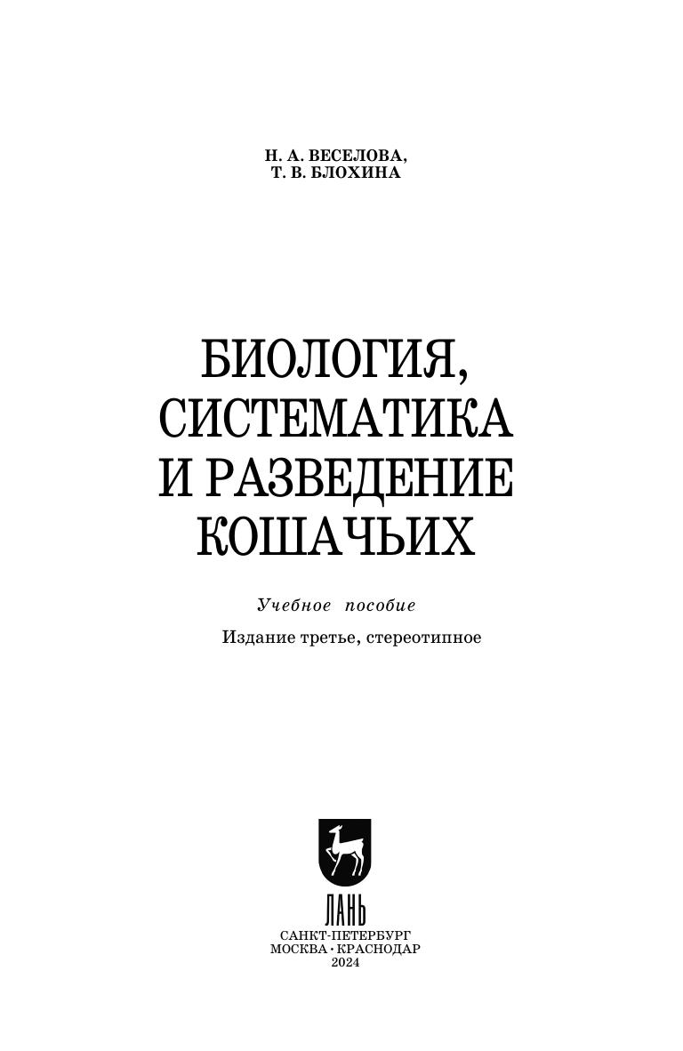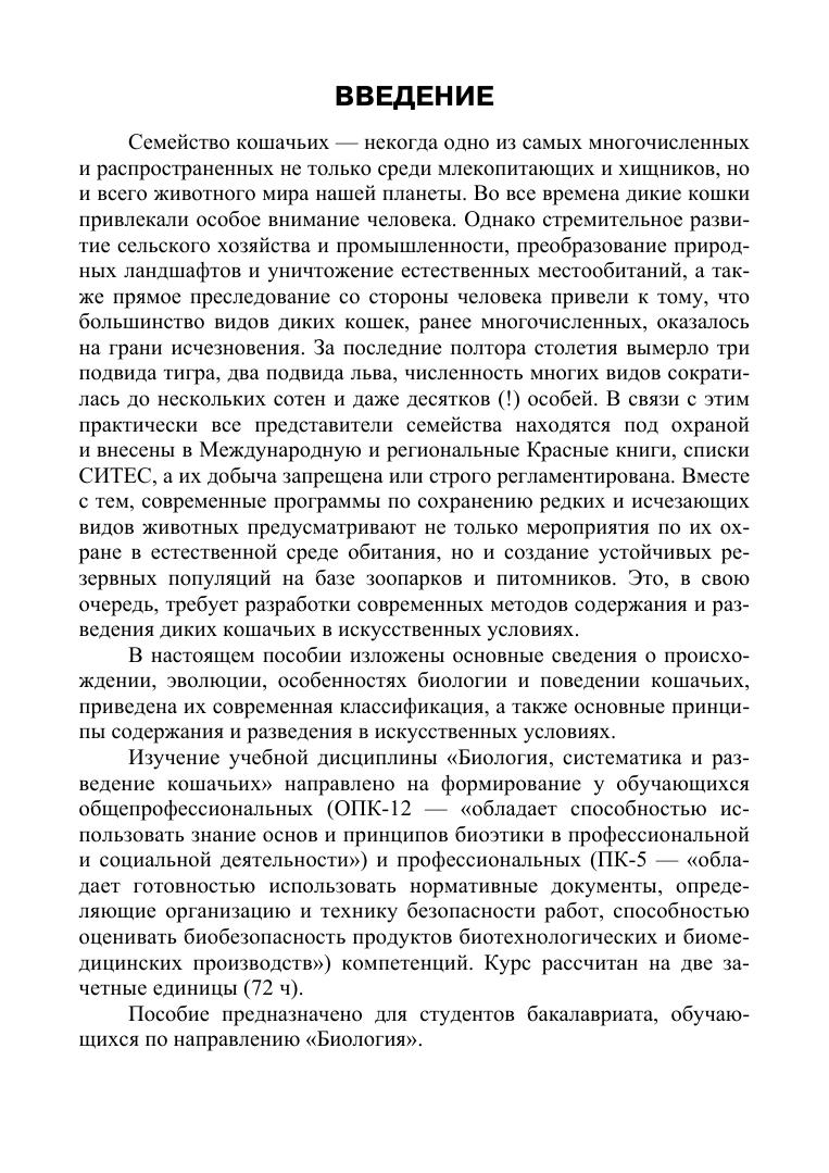 В учебном пособии изложены основные сведения о происхождении, особенностях биологии и систематике современных кошачьих, а также о методах их содержания и разведения в искусственных условиях. Пособие предназначено для бакалавров, обучающихся по направлению "Биология" по дисциплине "Биология, систематика и разведение кошачьих"