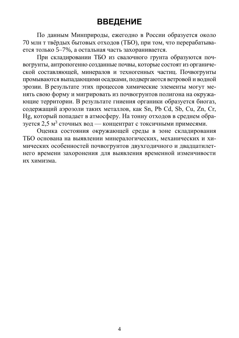 В учебном пособии описана технология оценки состояния окружающей среды в зоне складирования твердых бытовых отходов (ТБО), основанная на выявлении механических, минералогических, химических и биологических особенностей почвогрунтов двухгодичного и двадцатилетнего времени захоронения. Учебное пособие предназначено для студентов вузов.