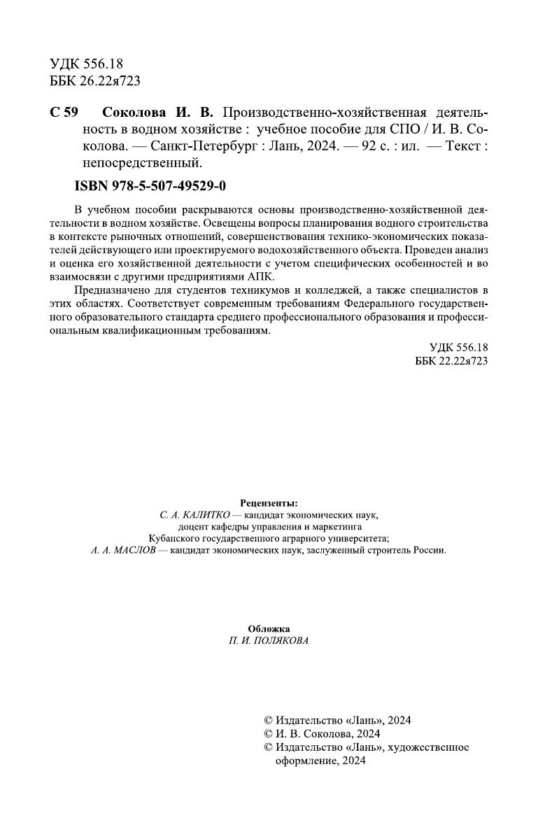 В учебном пособии раскрываются основы производственно-хозяйственной деятельности в водном хозяйстве. Освещены вопросы планирования водного строительства в контексте рыночных отношений, совершенствования технико-экономических показателей действующего или проектируемого водохозяйственного объекта. Проведен анализ и оценка его хозяйственной деятельности с учетом специфических особенностей и во взаимосвязи с другими предприятиями АПК. Предназначено для студентов техникумов и колледжей, а также специалистов в этих областях. Соответствует современным требованиям Федерального государственного образовательного стандарта среднего профессионального образования и профессиональным квалификационным требованиям.