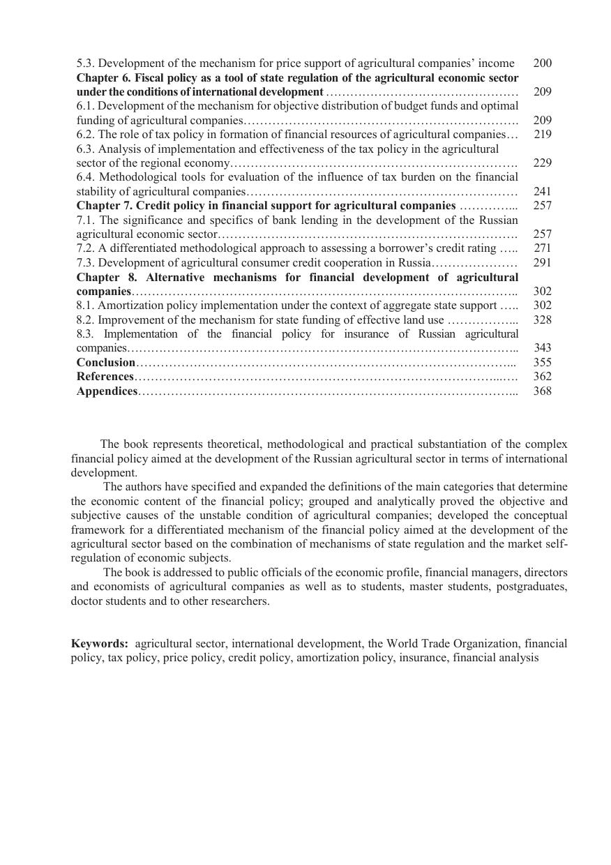 Книга адресована государственным служащим экономического профиля, финансовым менеджерам, руководителям и экономистам сельскохозяйственных организаций, а также студентам, магистрантам, аспирантам, докторантам и другим научным работникам.