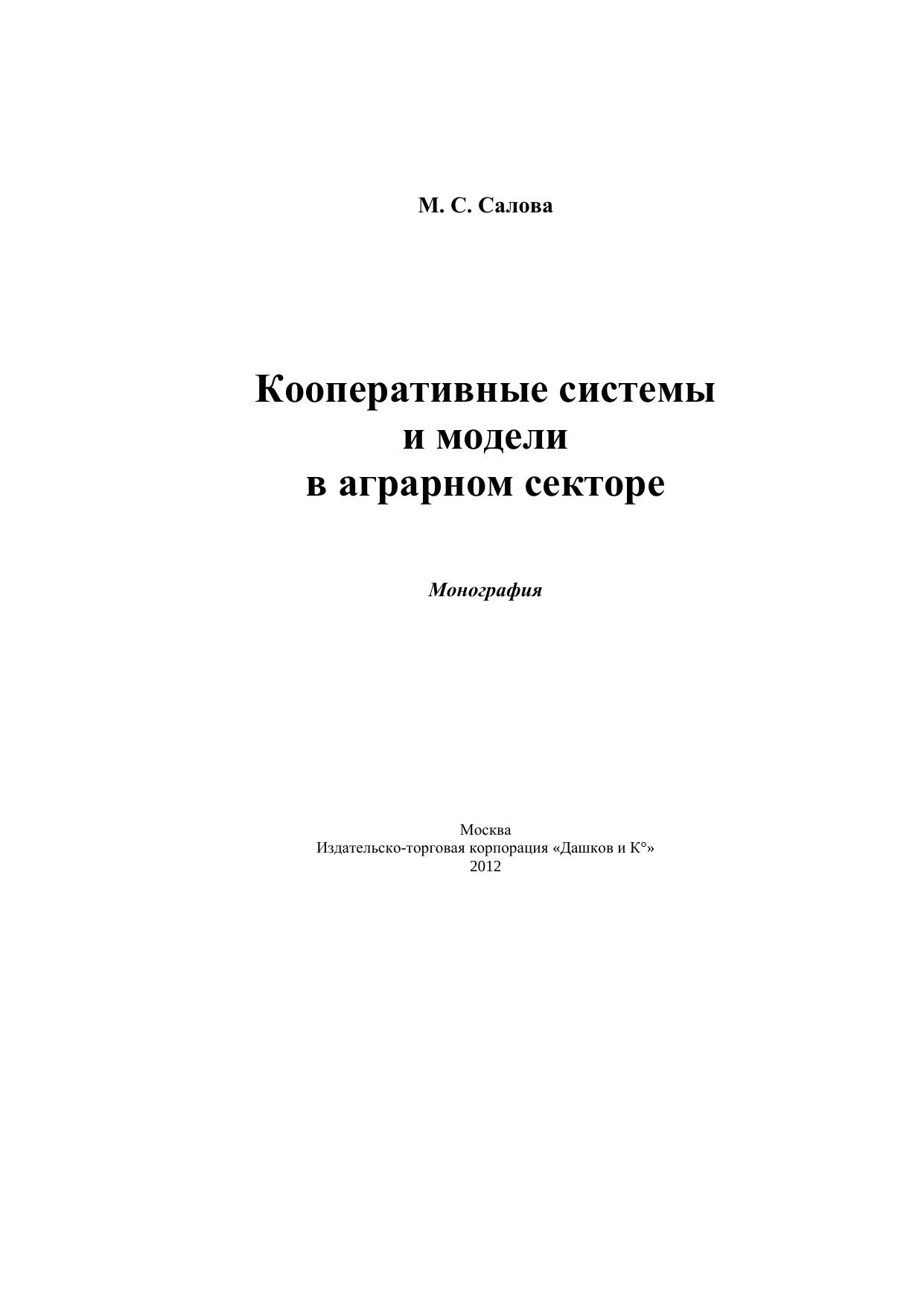 Кооперативные системы и модели в аграрном секторе: Монография