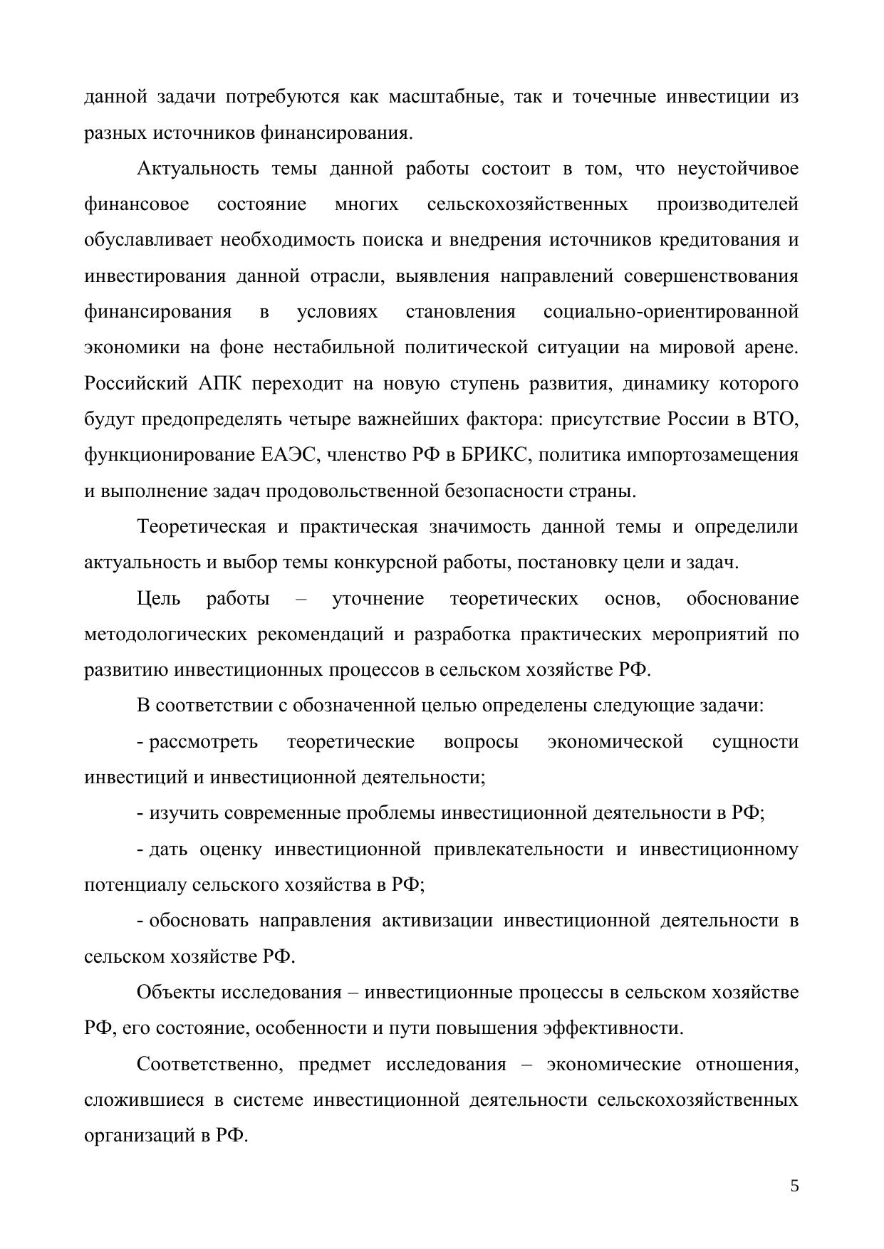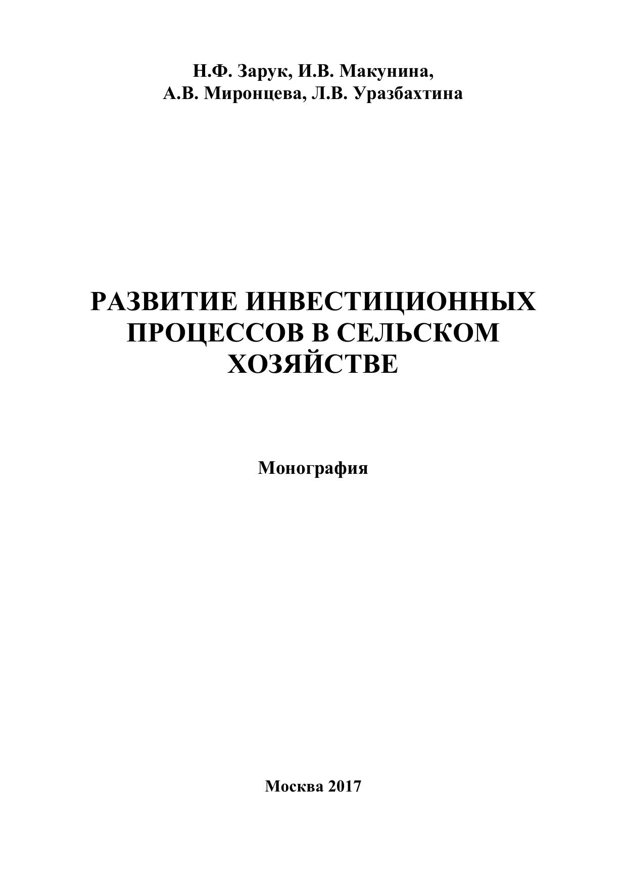 Развитие инвестиционных процессов в сельском хозяйстве