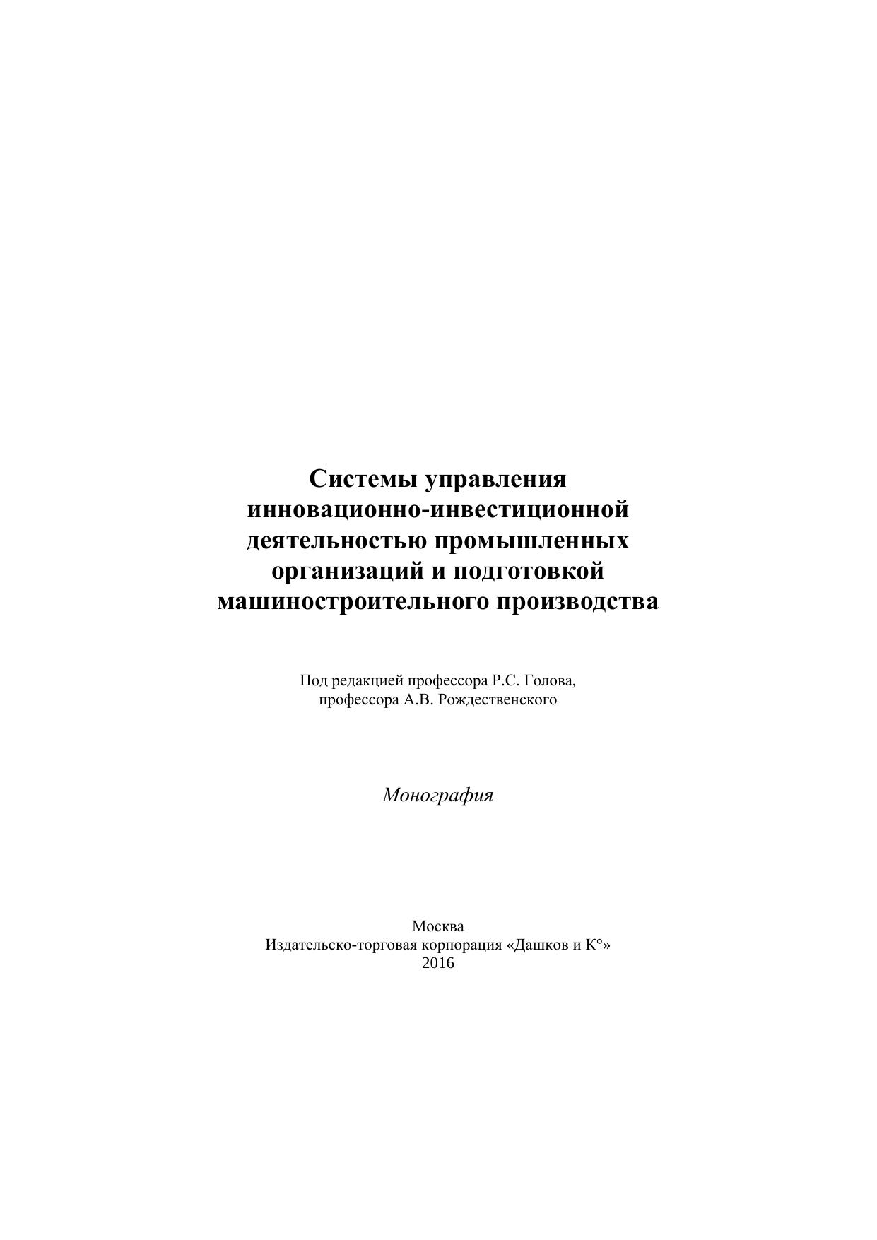 Системы управления инновационно-инвестиционной деятельностью промышленных организаций и подготовка машиностроиттельного производства: монография
