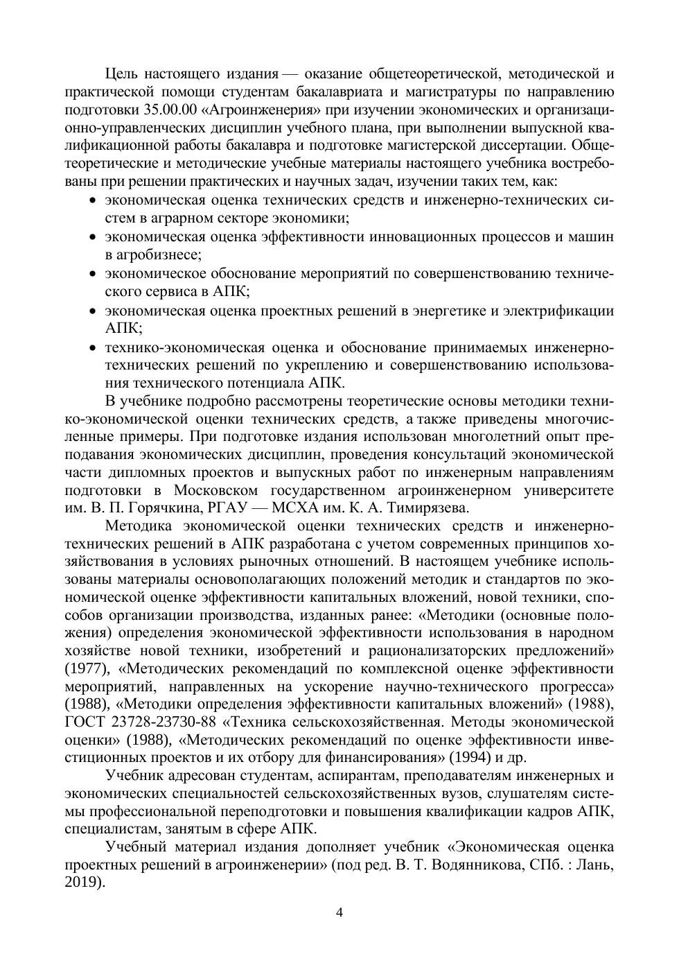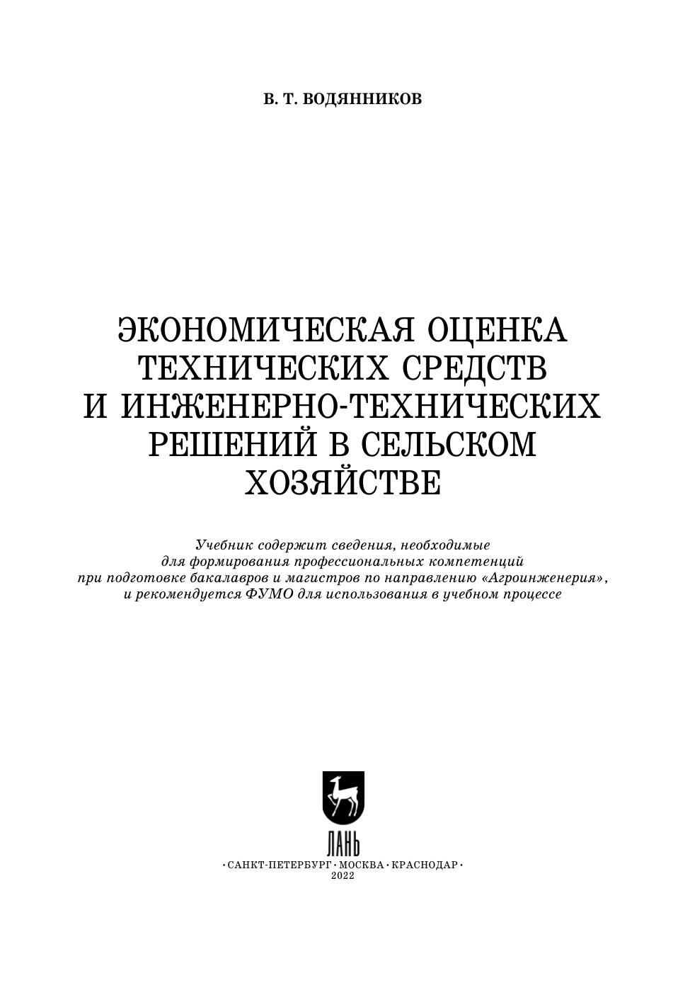 Учебник подготовлен в соответствии с требованиями ФГОС ВО, ОПОП ВО и учебных планов подготовки бакалавров и магистров по направлению «Агроинженерия», а также с учетом учебных программ дисциплин «Экономическое обоснование инженернотехнических решений» и «Оценка эффективности инвестиционных проектов в агроинженерии». Учебный материал издания призван формировать у студентов универсальные, общепрофессиональные и профессиональные компетенции. Рассмотрены эволюция инженерно-технической деятельности и тенденции совершенствования технических средств производства, научные основы их экономической оценки. Особое место в учебнике отведено практикуму по экономической оценке технических средств и инженернотехнических решений в сельско-хозяйственном производстве. Для студентов вузов по агроинженерным специальностям.
