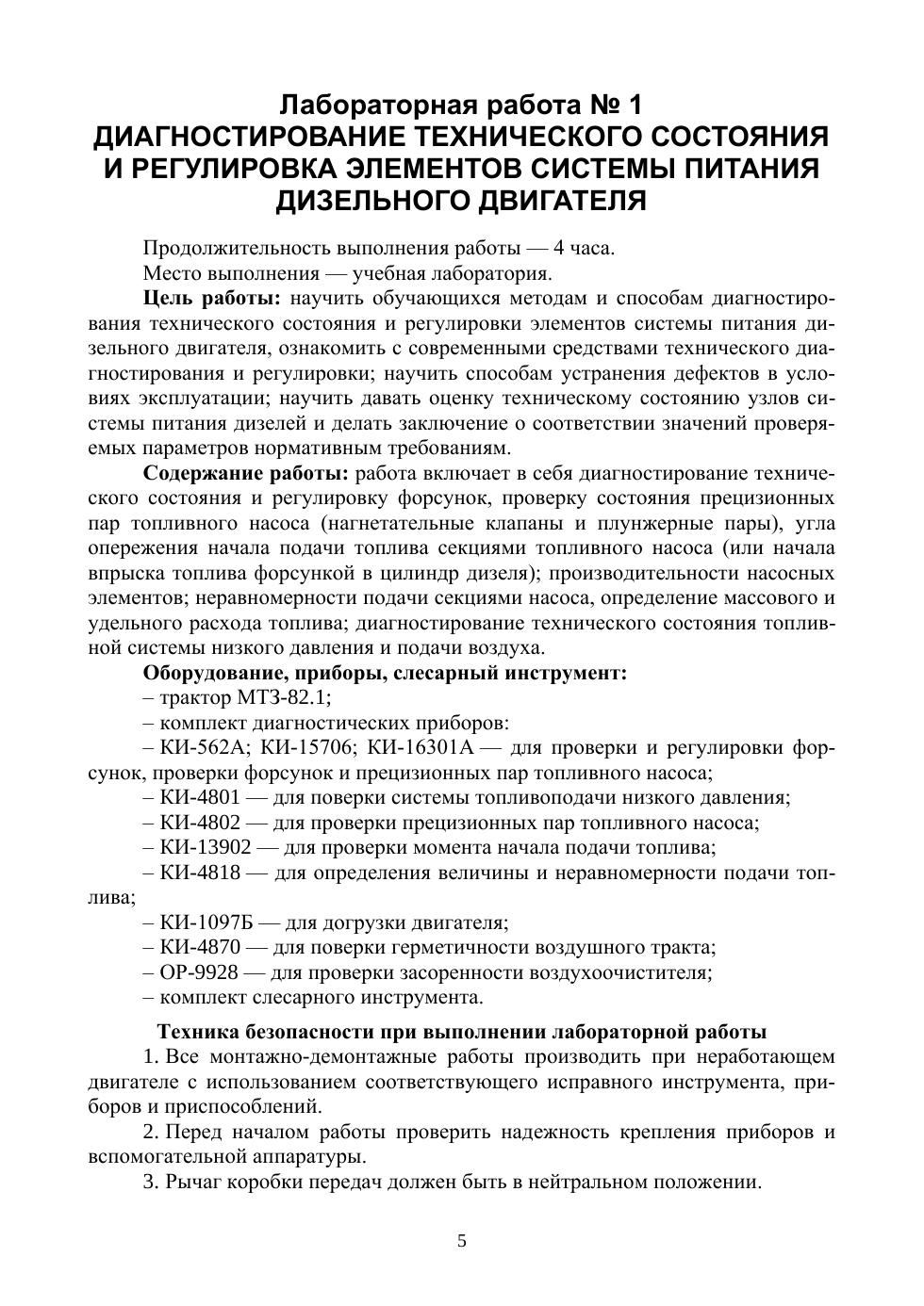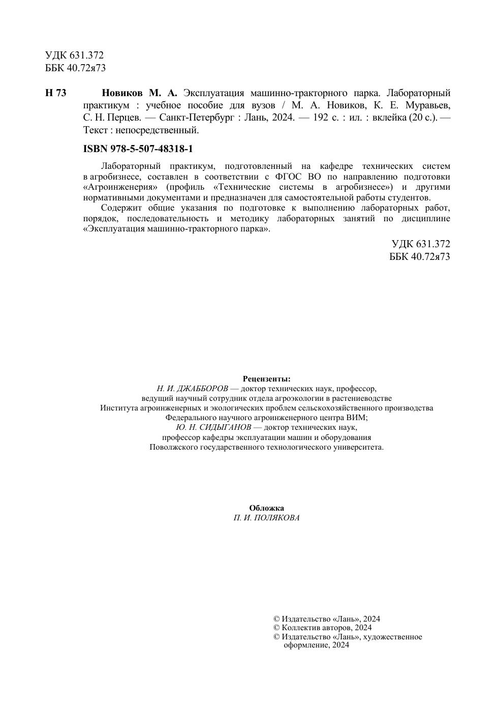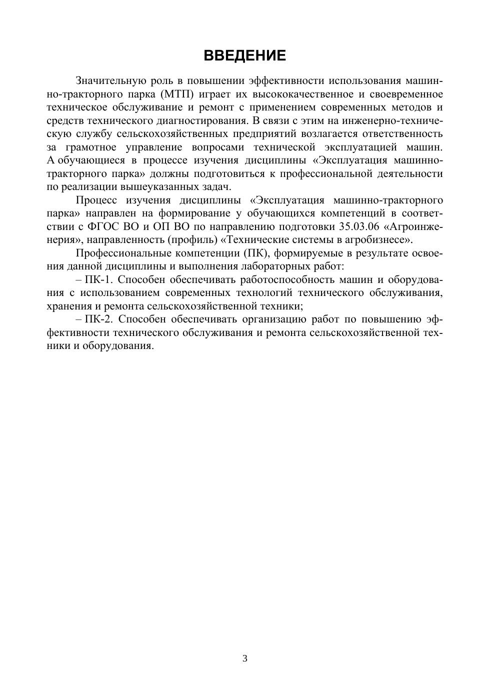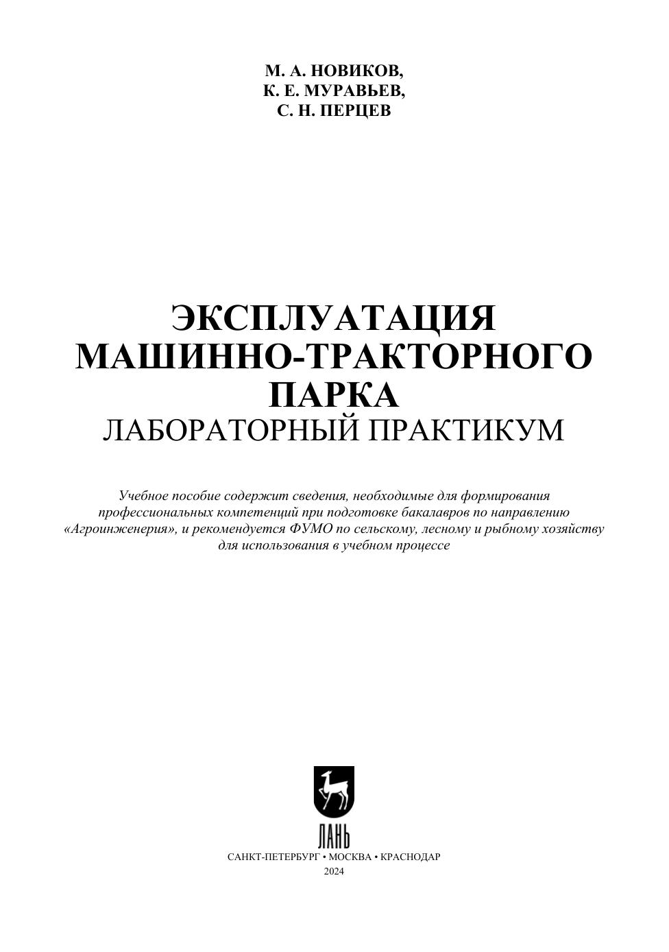 Лабораторный практикум, подготовленный на кафедре технических систем в агробизнесе, составлен в соответствии с ФГОС ВО по направлению подготовки «Агроинженерия» (профиль «Технические системы в агробизнесе») и другими нормативными документами и предназначен для самостоятельной работы студентов. Содержит общие указания по подготовке к выполнению лабораторных работ, порядок, последовательность и методику лабораторных занятий по дисциплине «Эксплуатация машинно-тракторного парка».