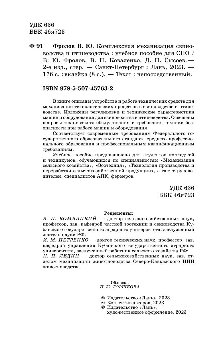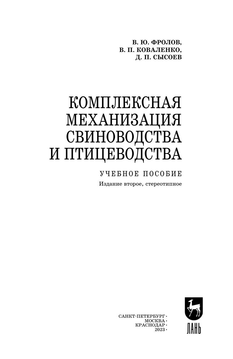 В книге описаны устройства и работа технических средств для механизации технологических процессов в свиноводстве и птицеводстве. Изложены регулировки и технические характеристики машин и оборудования для свиноводства и птицеводства. Освещены вопросы технического обслуживания и требования техники безопасности при работе машин и оборудования. Соответствует современным требованиям Федерального государственного образовательного стандарта среднего профессионального образования и профессиональным квалификационным требованиям. Учебное пособие предназначено для студентов колледжей и техникумов, обучающихся по специальностям «Механизация сельского хозяйства», «Зоотехния», «Технология производства и переработки сельскохозяйственной продукции», а также руководителей, специалистов АПК, фермеров.