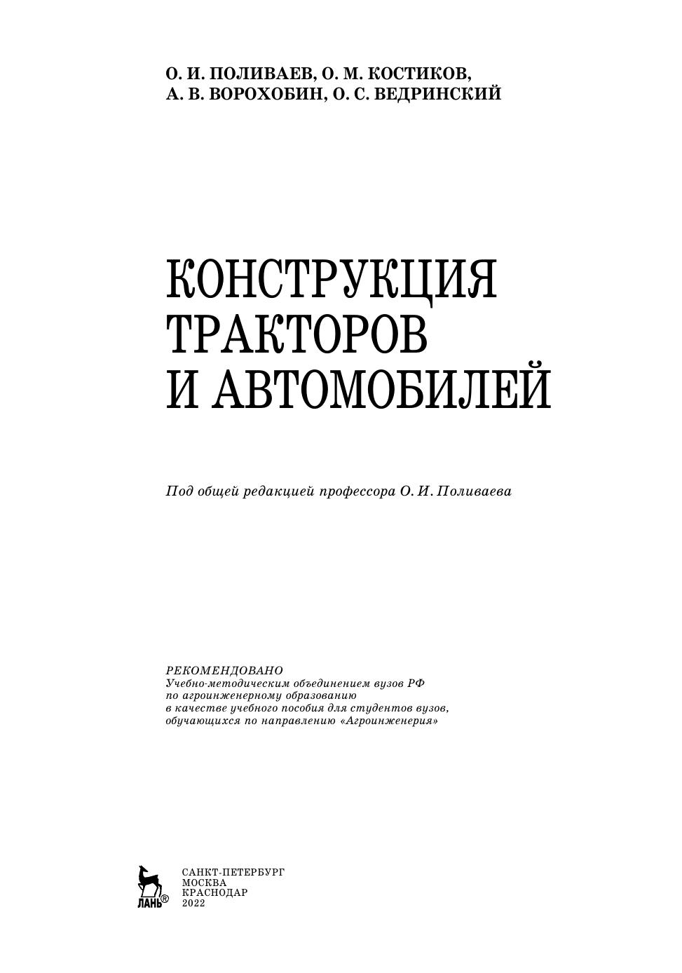 Конструкция тракторов и автомобилей
