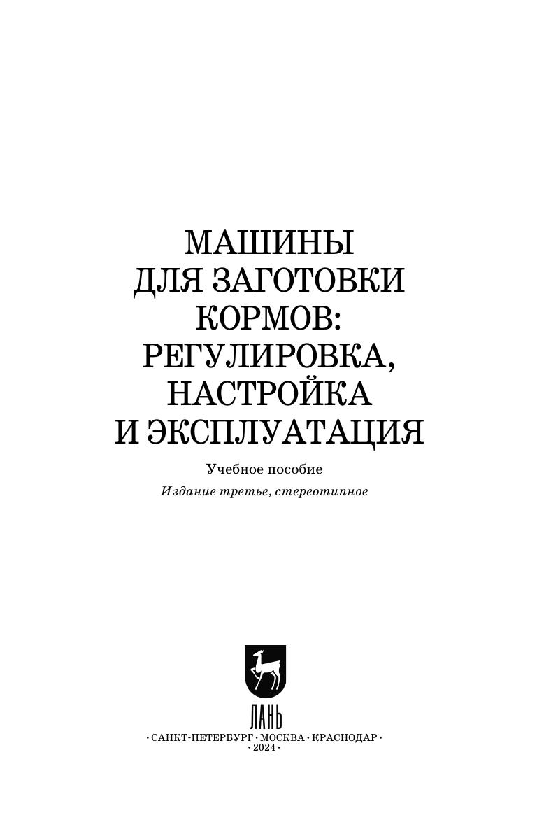 В учебном пособии приведены сведения по регулировке и подготовке к работе широко применяемых в сельскохозяйственном производстве машин для заготовки кормов. Изложены основные правила проверки технического состояния машин, их настройки, регулировки и указания по безопасной работе в полевых условиях. Учебное пособие предназначено для студентов аграрных колледжей, обучающихся по специальностям «Механизация сельского хозяйства», «Эксплуатация и ремонт сельскохозяйственной техники и оборудования». Соответствует современным требованиям Федерального государственного образовательного стандарта среднего профессионального образования и профессиональным квалификационным требованиям.