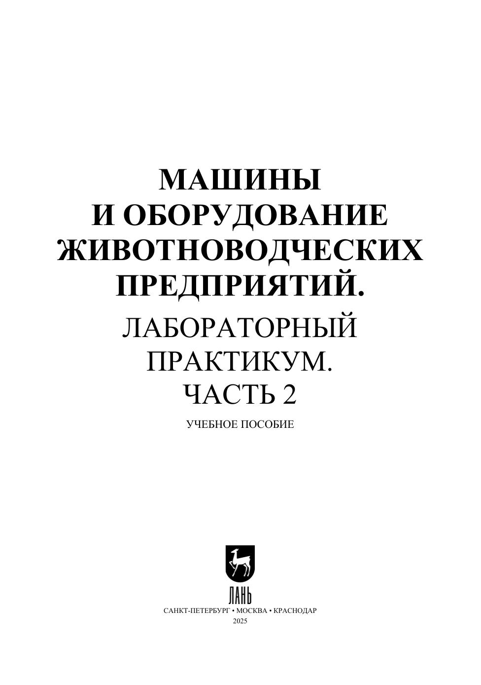 Машины и оборудование животноводческих предприятий. Лабораторный практикум. Часть 2
